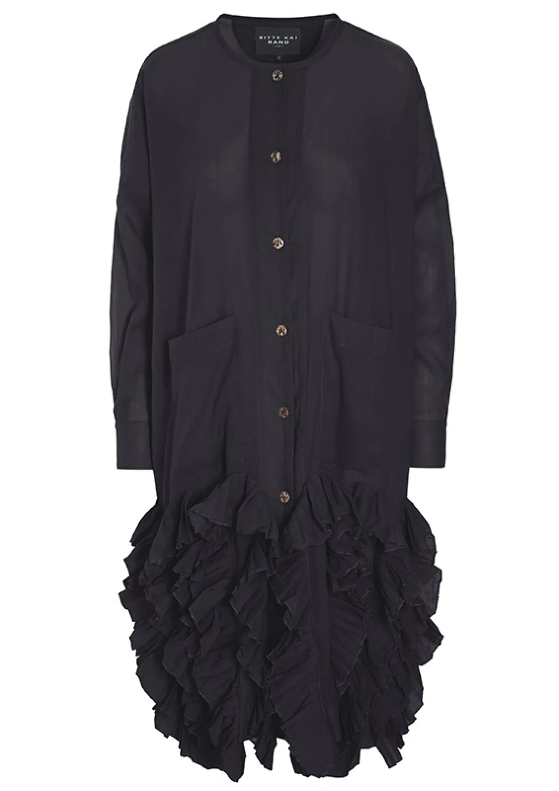 En Pa Un Gang Iojnefaldende, Klaedelig Og Meget Anvendelig Kjole. Flaeserne, Der Bolger Op Og Ned, Giver Et Smukt Og Unikt Udtryk. Brug Kjolen Med Enkle, Flade Ballerinasko, Skab Kontrast Til Flaeserne Med Et Par Sporty Sneakers, Eller Hold En Fest I Hoje Haele.