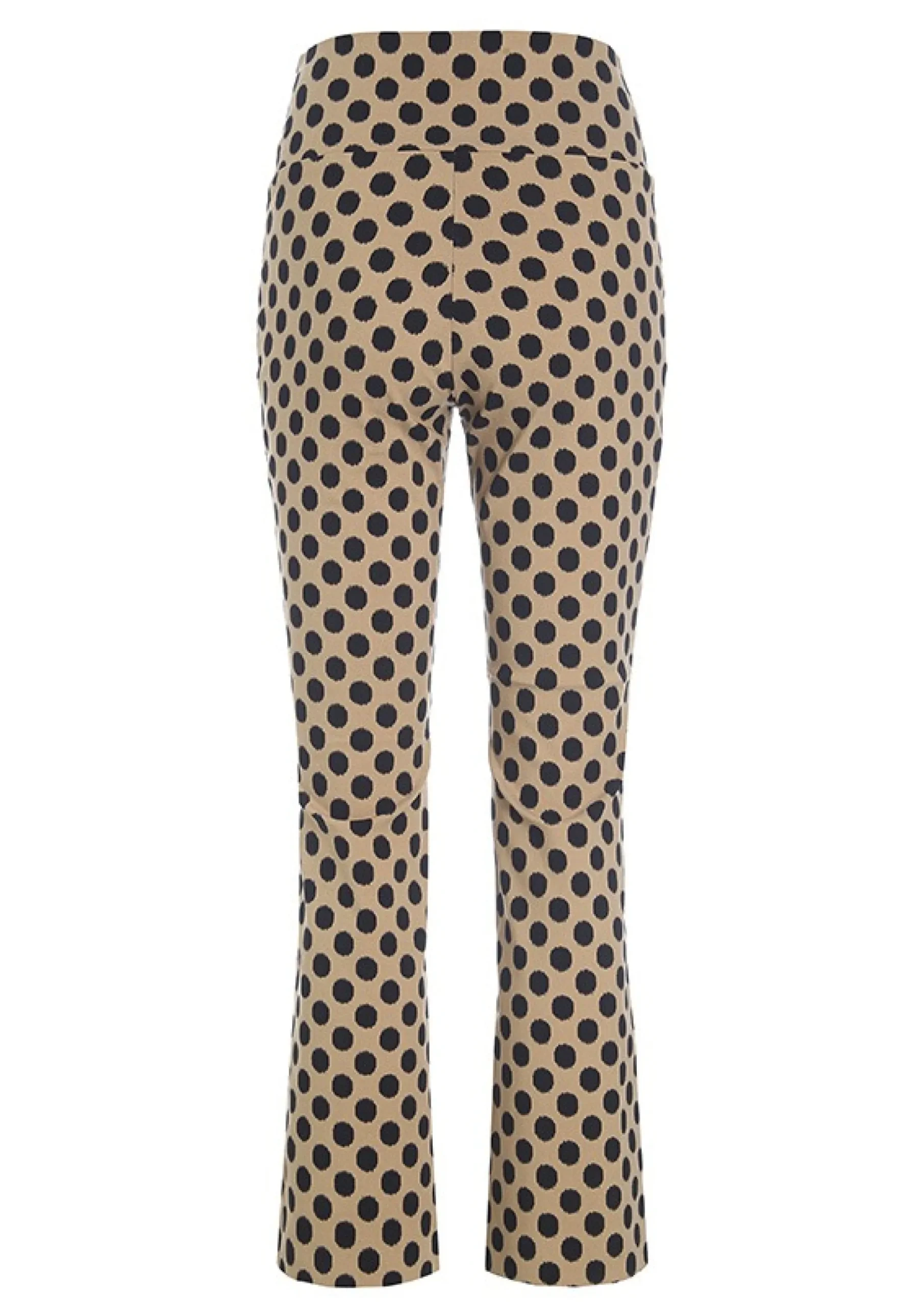 Bukser, Let Stumpende Med Muntre Prikker. Den Brede Linning Kan Traekkes Op Over Maven Eller Foldes Ned For En Almindelig Taljehojde. Denne Effekt Gor Bukserne Meget Behagelige. Der Er Stretch I Stoffet, Hvilket Sikrer En God Bevaegelighed.
