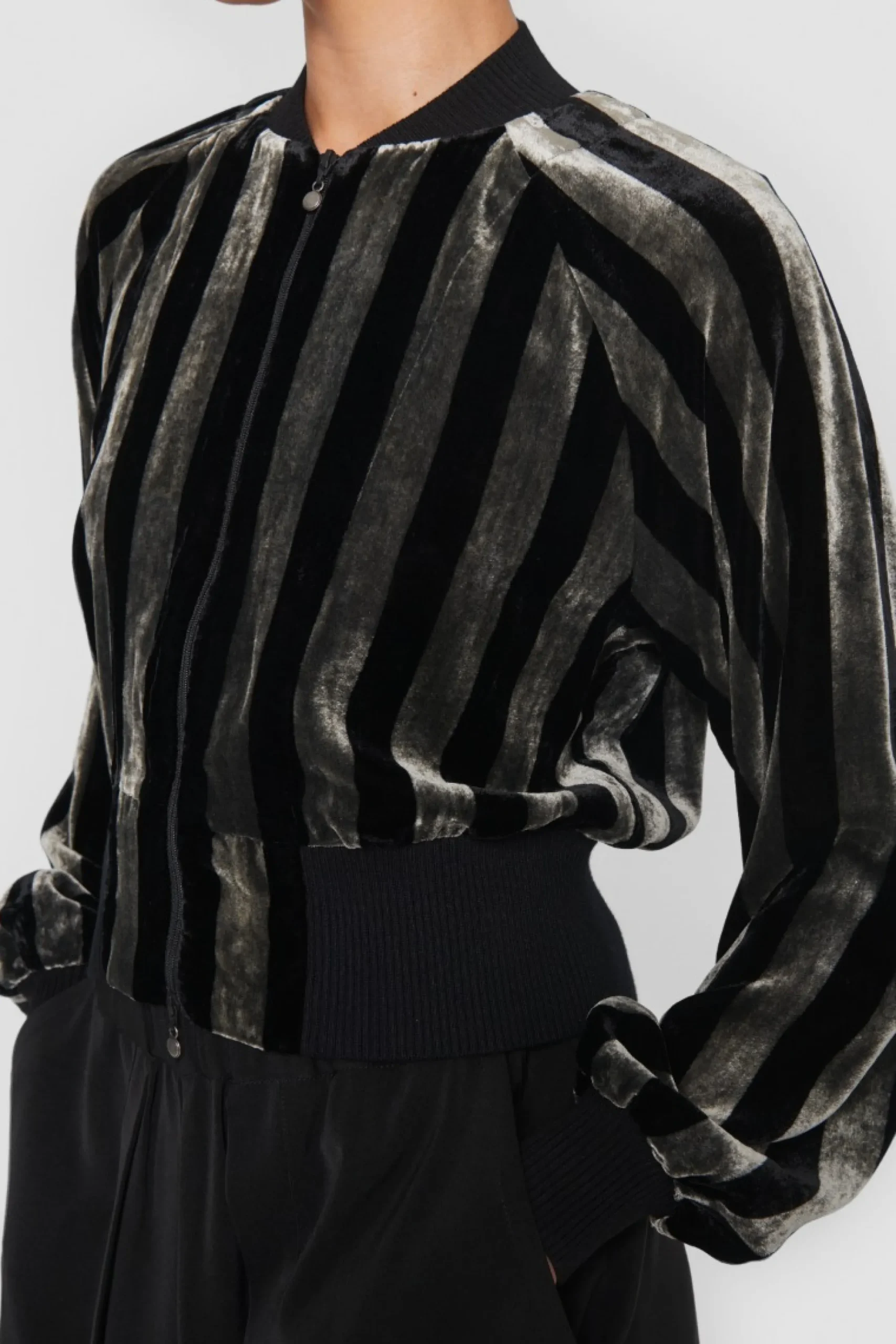 Cool Bomberjakke, Der Er Et Oplagt Alternativ Til En Blazer Eller Cardigan. Det Laekre Velour Giver Et Touch Af Luksus, Samtidig Med At Snittet Er Sporty Og Uhojtideligt. Brug Den Til Dine Jeans, Tag Den Udover Kjoler Eller Kombiner Den Med De Matchende Velvet Stripe Bukser.
