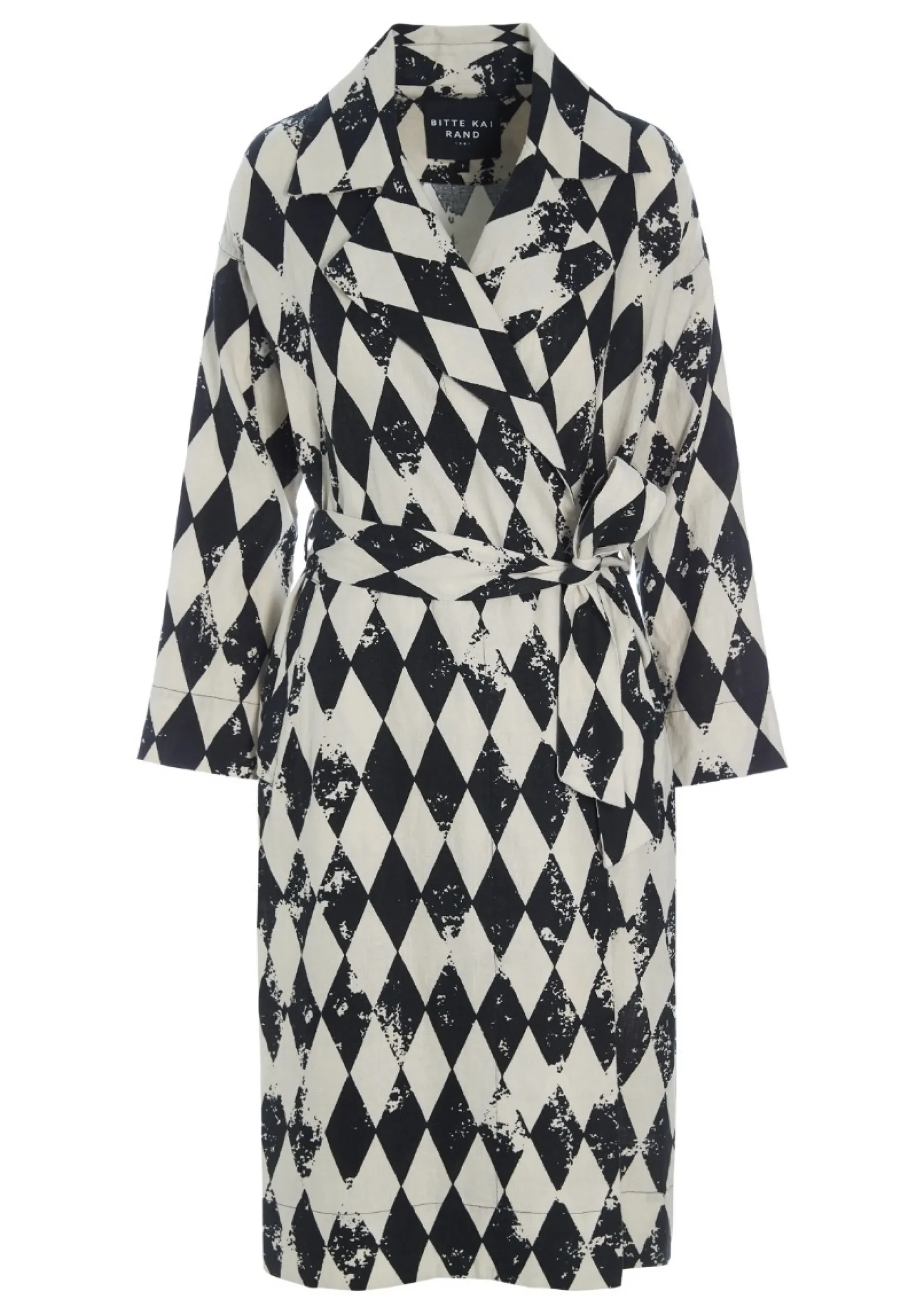 Meget Klaedelig Og Opsigtsvaekkende Jakke Med Et Effektfuldt Harlequin-Print. Jakkens Baelte Markerer Taljen Og Giver En Flot Silhuet. Brug Den Til At Give Et Ensfarvet Basissaet Karakter. Eller Saet Den Sammen Med Andre Print For Et Personligt Monstermiks.