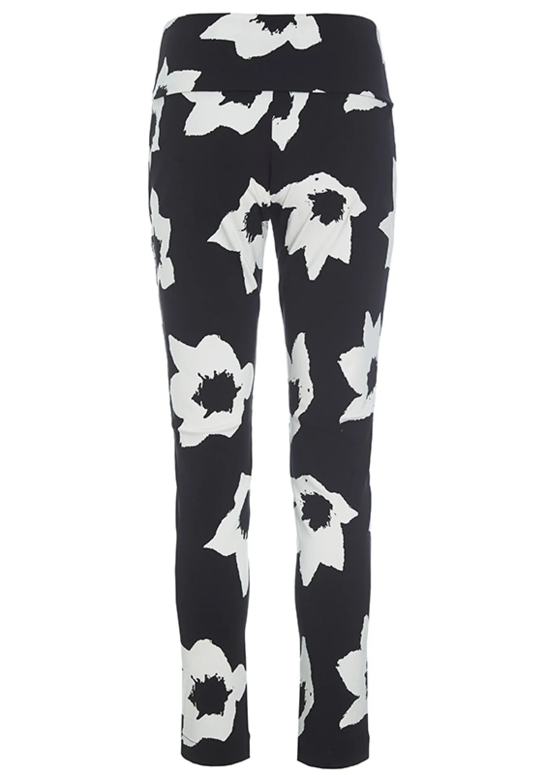 Meget Anvendelige Bukser Med Et Monokromt Blomstermonster, Der Kan Matches Med Sa Godt Som Alt. De Er Taetsiddende, Og Der Er Stretch I Stoffet, Hvilket Sikrer God Bevaegelighed. Buksernes Brede Linning Kan Traekkes Op Over Maven Eller Foldes Ned For En Almindelig Taljehojde.
