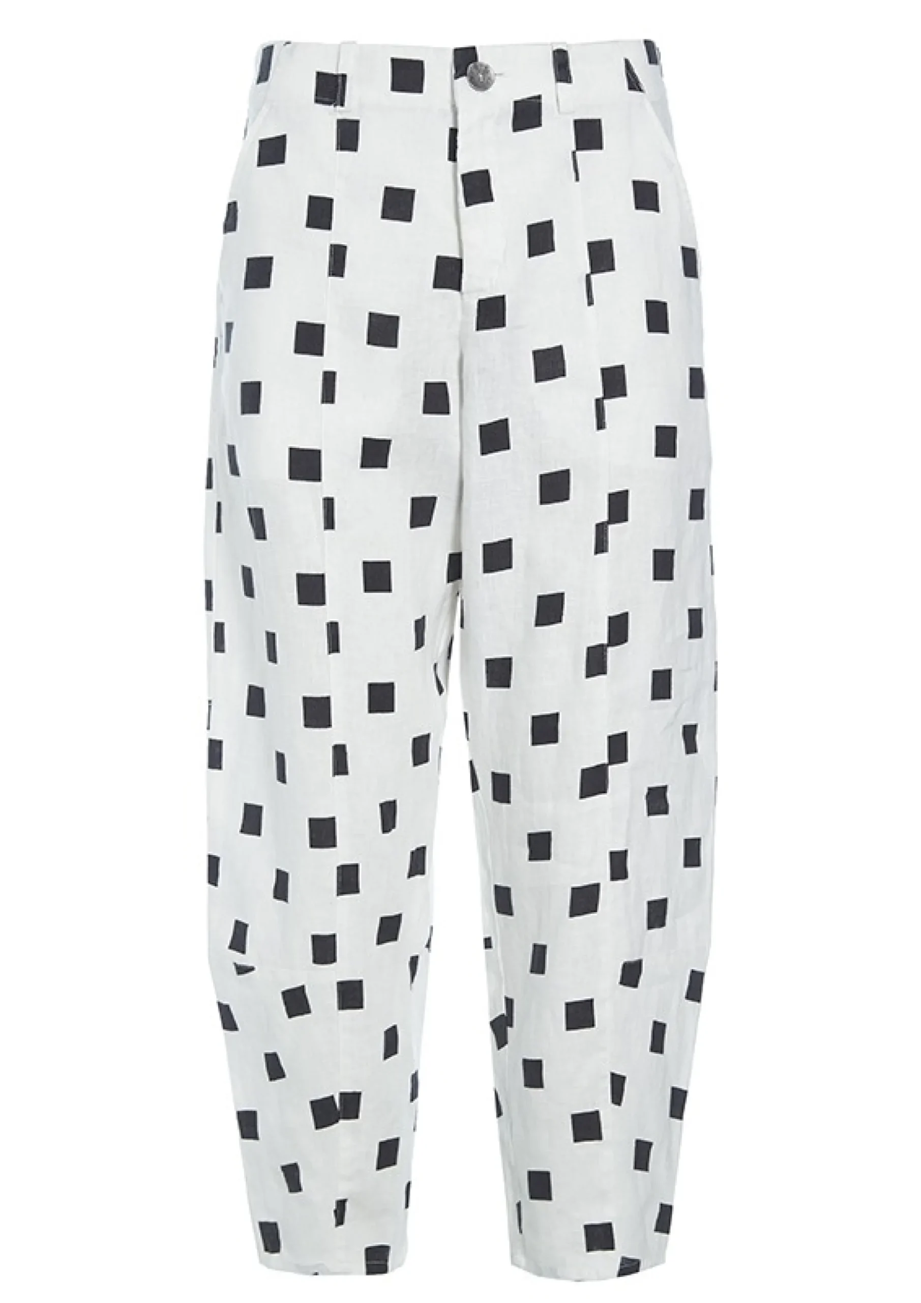 Bukser Med Grafiske Tern. De Har Skaeringer Pa Benene, Som Smaller Til Forneden, Hvilket Skaber En Let Posende Facon. Behagelige Bukser, Der Er Flotte Med En T-Shirt Eller Skjorte. Og Sammen Med Checkpoint Linen Jakken Far Du Det Flotteste Saet.