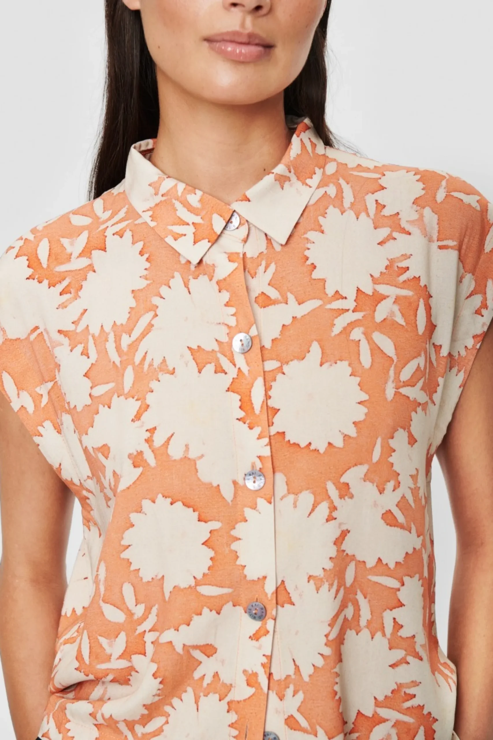 Enkel, Aermelos Bluse Med Brede Skuldre. Den Vil Vaere Et Godt Basiselement I Enhver Garderobe. Brug Blusen Til Alt Fra Jeans Til Klassiske Bukser Og Paene Nederdele. Eller Match Med Summer Rain & Dahlias Shorts, Og Fa Et Stilfuldt Sommersaet