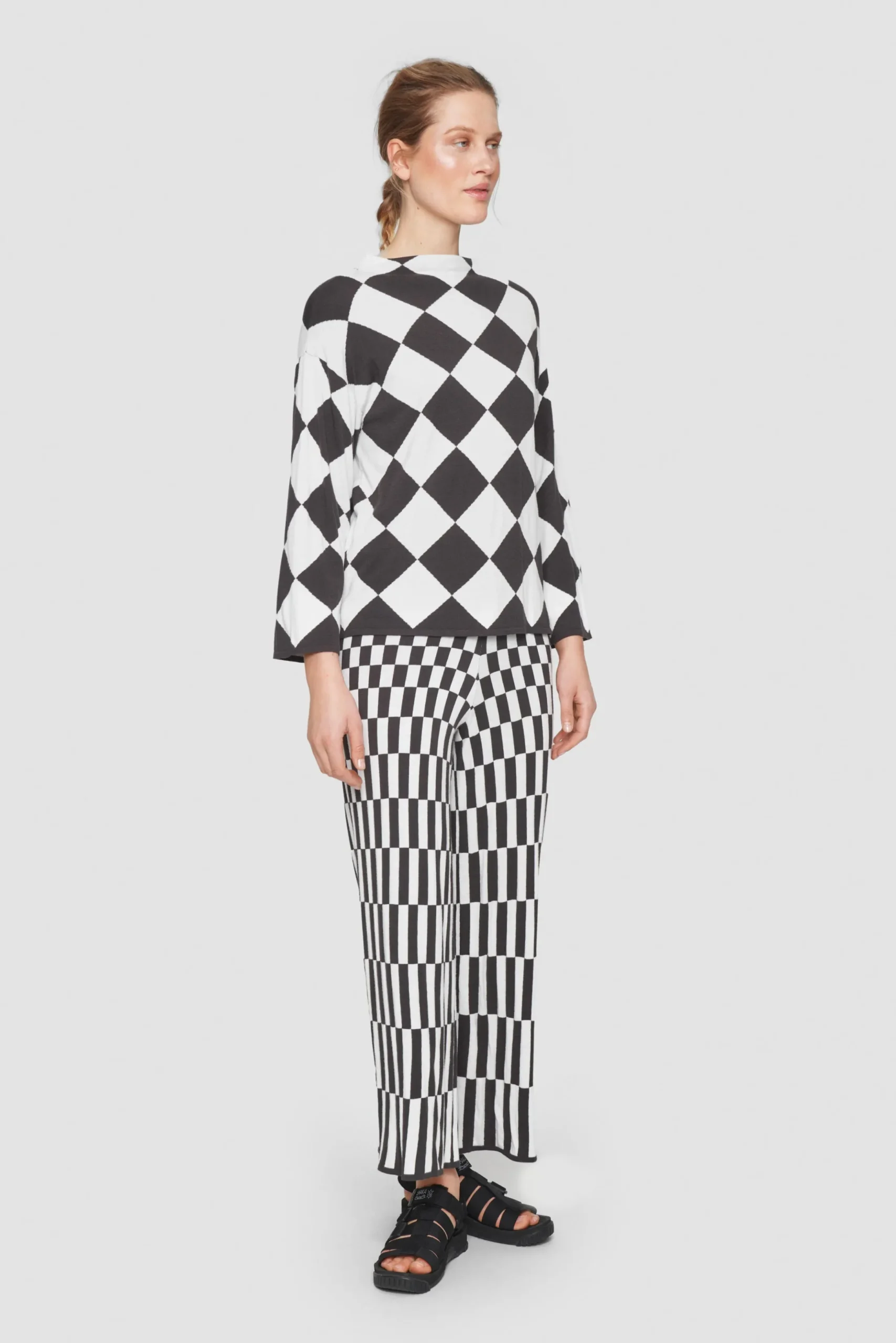 Strikbluse I Et Super Enkelt Snit Og Med Et Monster, Som Skaber En Iojnefaldende Grafisk Effekt, Der Fungerer Flot I Et Monokromt Look. Den Er Ogsa Oplagt At Bruge Som Kontrast Til Farvestralende Underdele, Stromper Og Sko. Blusen Har En Lostsiddende Pasform.