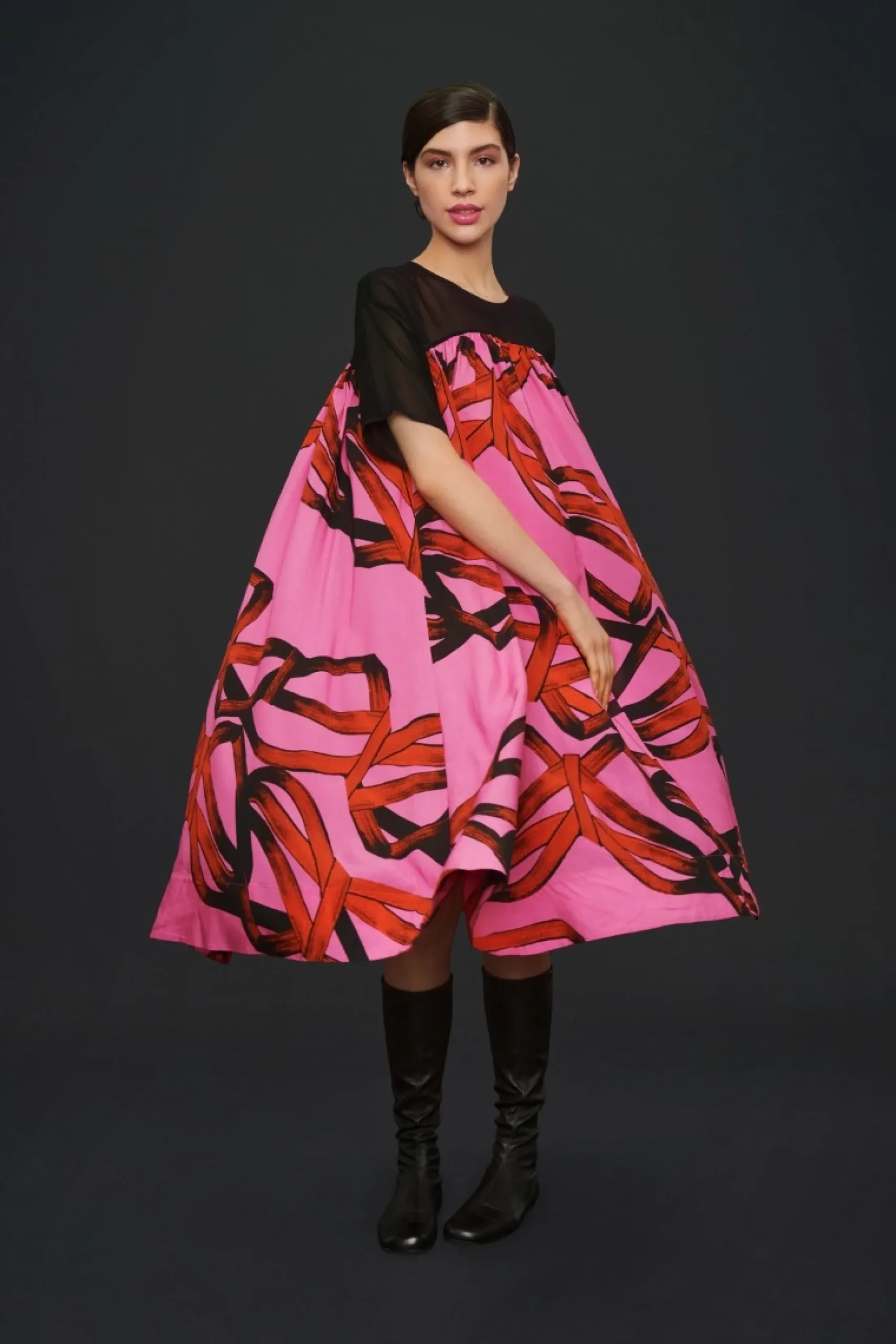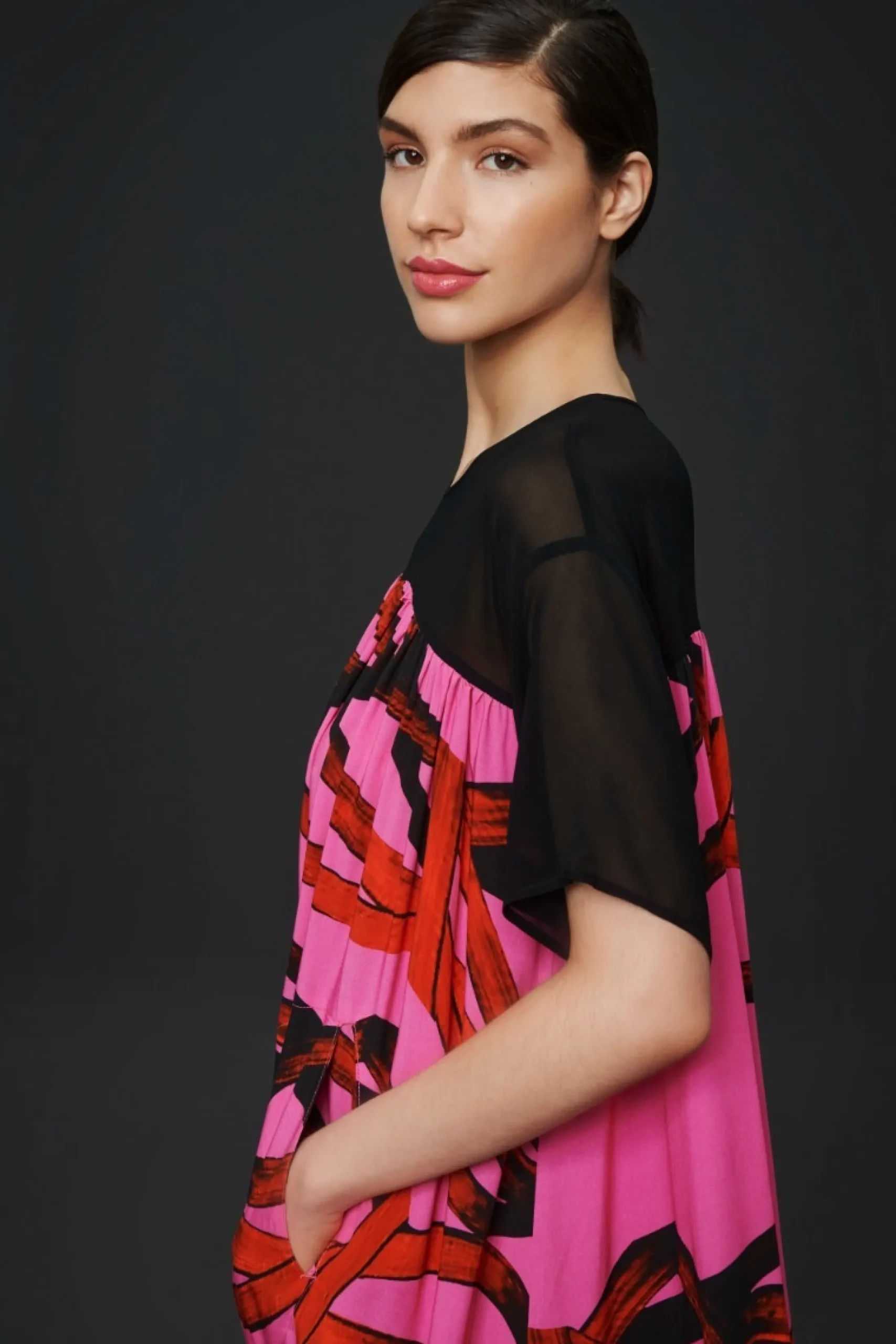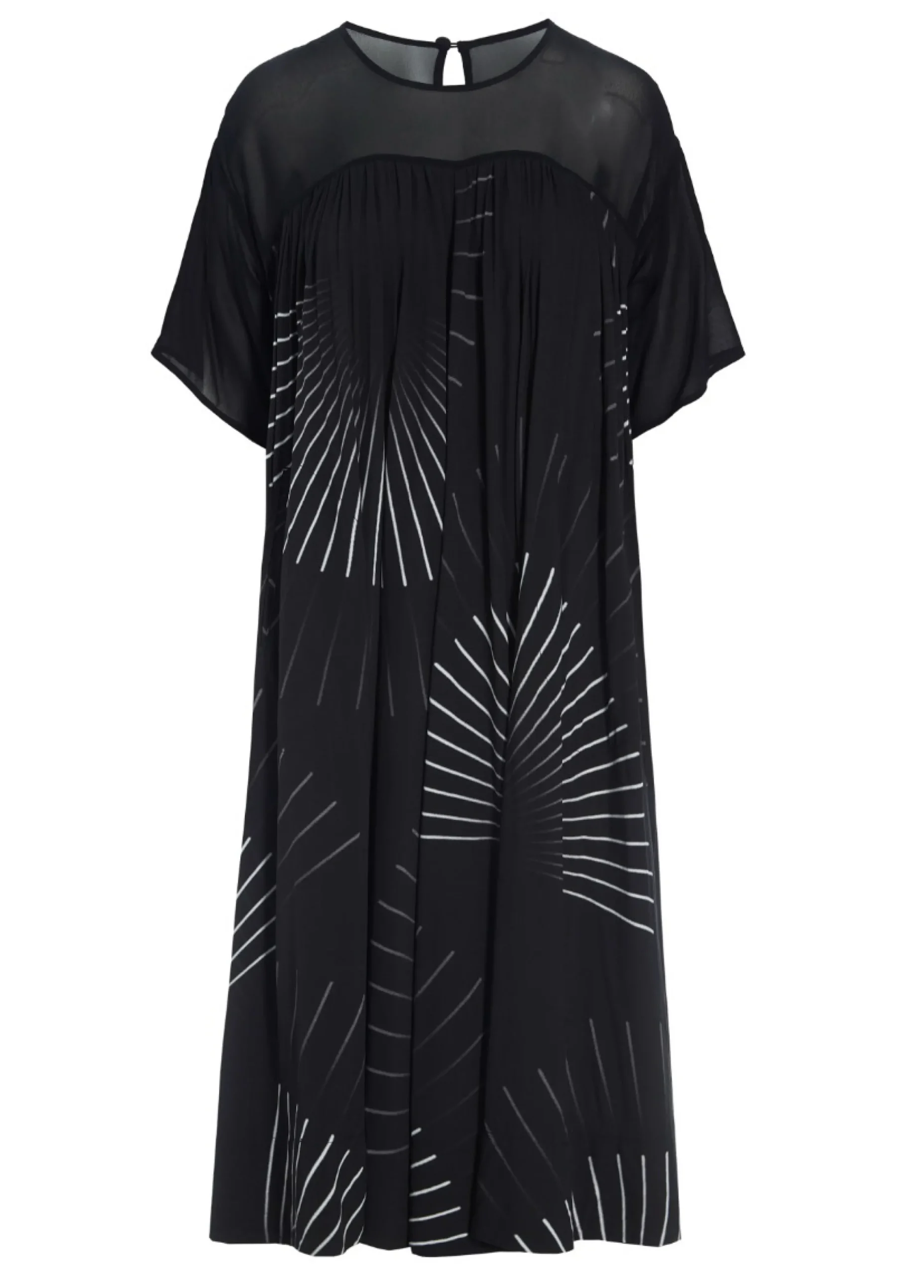 Kjole Med Flot Volumen Og Et Stort, Iojnefaldende Print, Der Giver En Kunstfaerdig Grafisk Effekt. Kjolen Er Lavet En I Laekker Viskosekvalitet, Der Falder Smukt Om Kroppen. Du Behover Ikke Tilsaette Andet End Et Par Laekre Sko, Sa Er Du Gennemfort Og Elegant Klaedt.