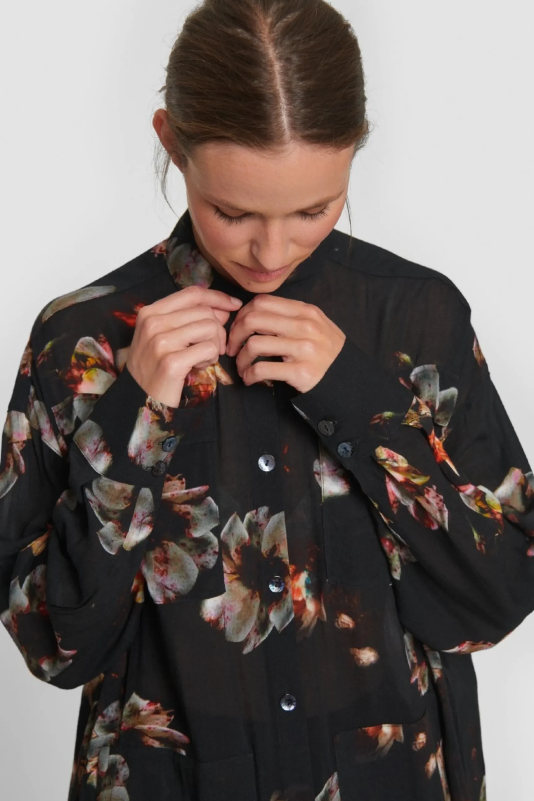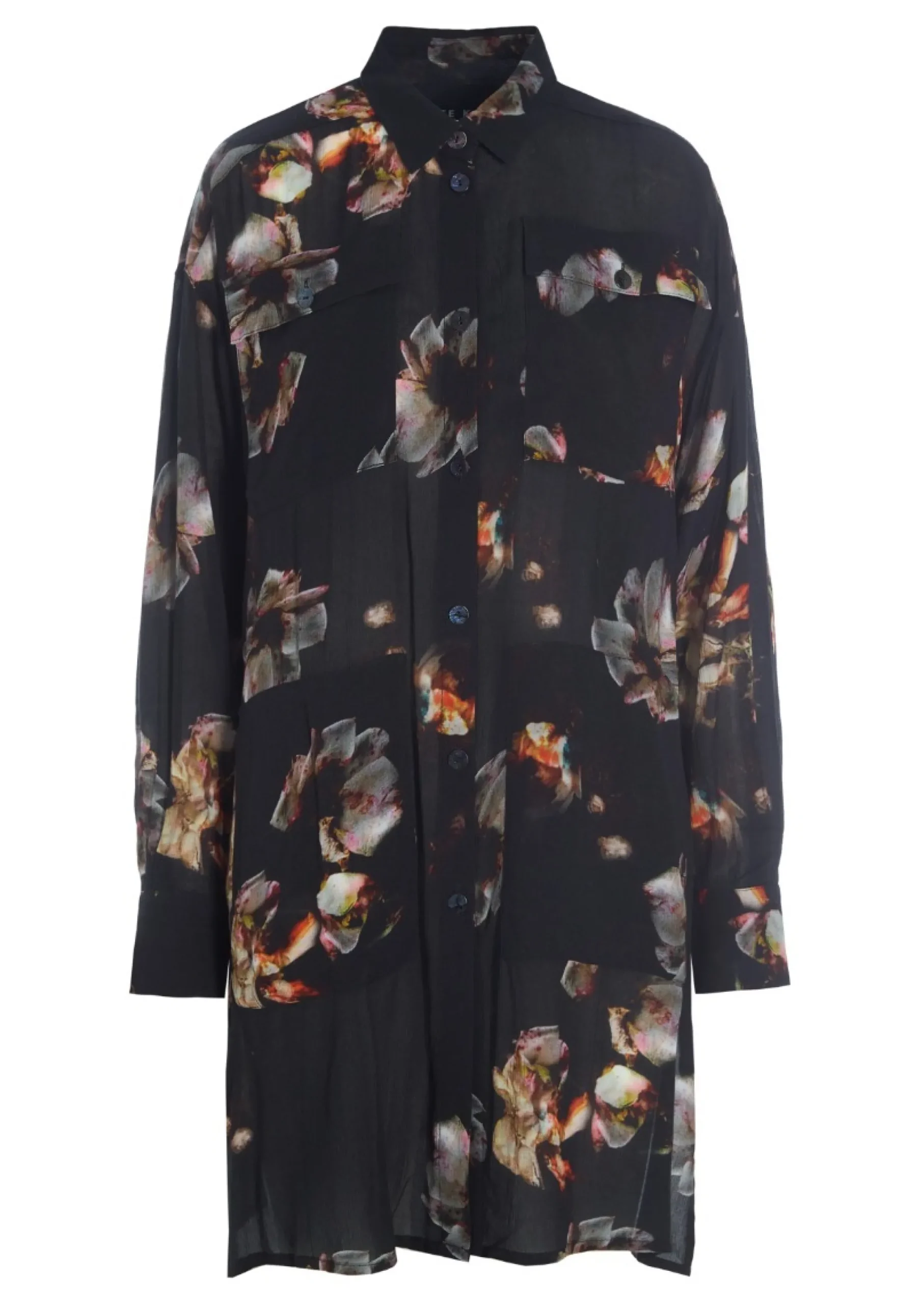 Lang Skjorte I Dejlig Blod Kvalitet Og Med Et Abstrakt Blomsterprint I Fine Nuancer. Skjortens Laengde Gor Det Oplagt At Bruge Den Med Taetsiddende Bukser Under. Og Saetter Du Kraftige Stromper Eller Leggins Til, Kan Den Ogsa Bruges Som Kort Kjole.