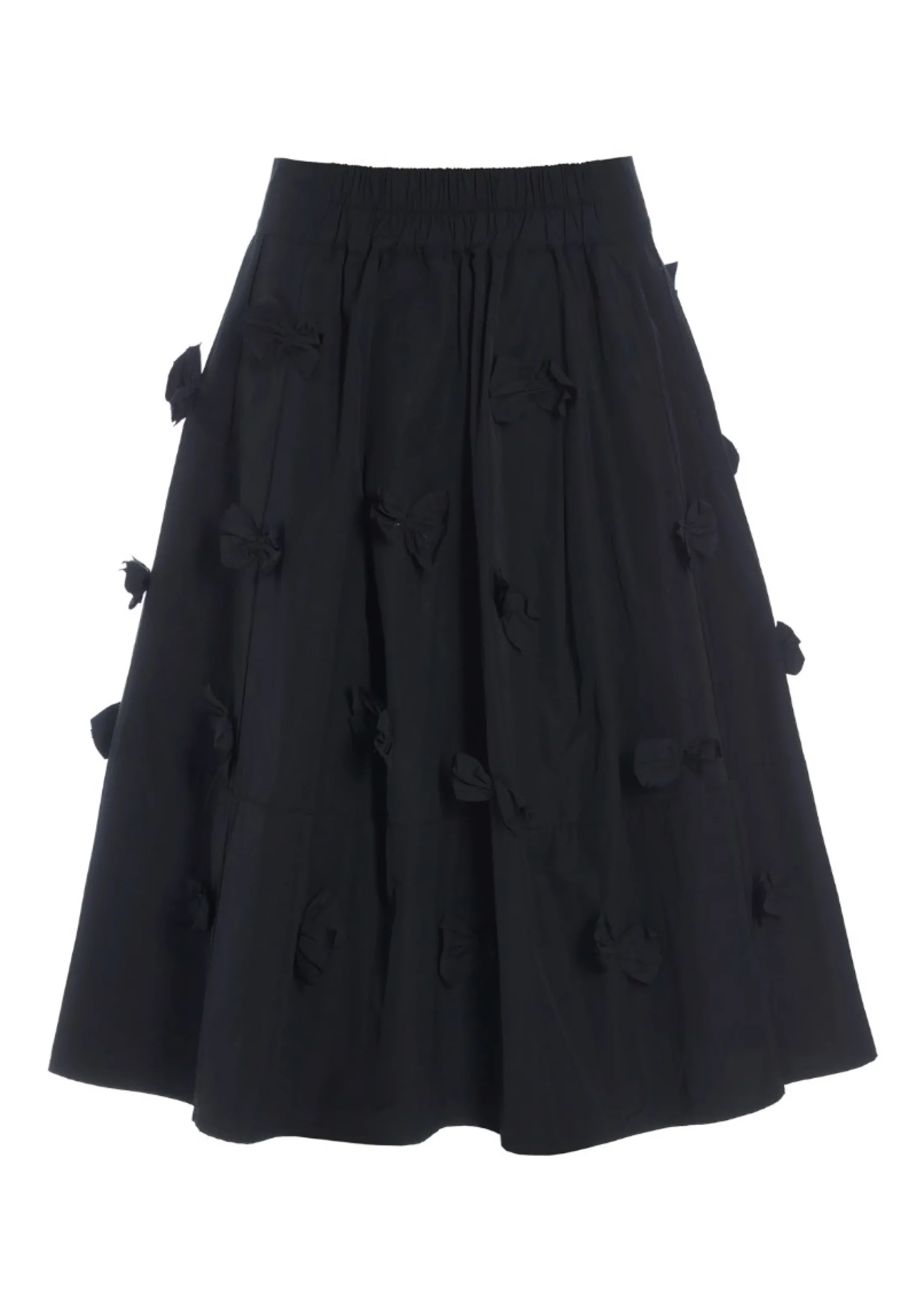 En Velsiddende Og Klaedelig Nederdel, Som Har Sma Slojfer Stroet Ud Over Skortet, Hvilket Gor Den Til Noget Helt Saerligt. Kombiner Nederdelen Med En Enkel Bluse Eller Skjorte. Og Saet Sa Ballerinaer, Herresko Eller Hoje Haele Til Alt Efter, Hvor Festligt, Det Skal Vaere.