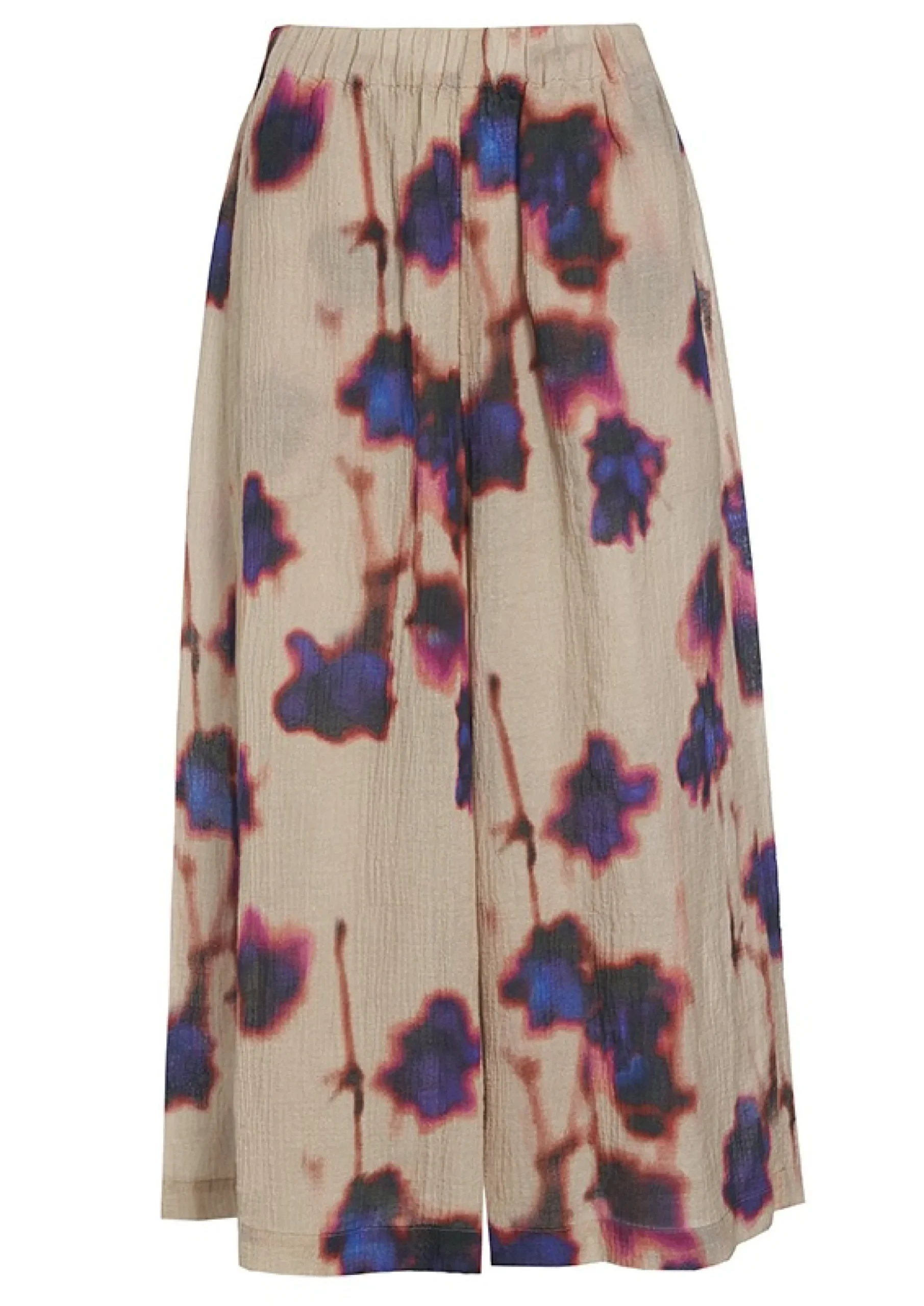 Bukser Med Brede Ben Og Et Smukt, Abstrakt Blomstermonster. De Er Meget Behagelige At Have Pa. Samtidig Er Bukserne Super Elegante, Og Matcher Du Dem Med Hazy & Yume Blusen, Har Du Et Stilsikkert Saet, Der Kan Bruges Til Bade Hverdag Og En Aften I Byen.