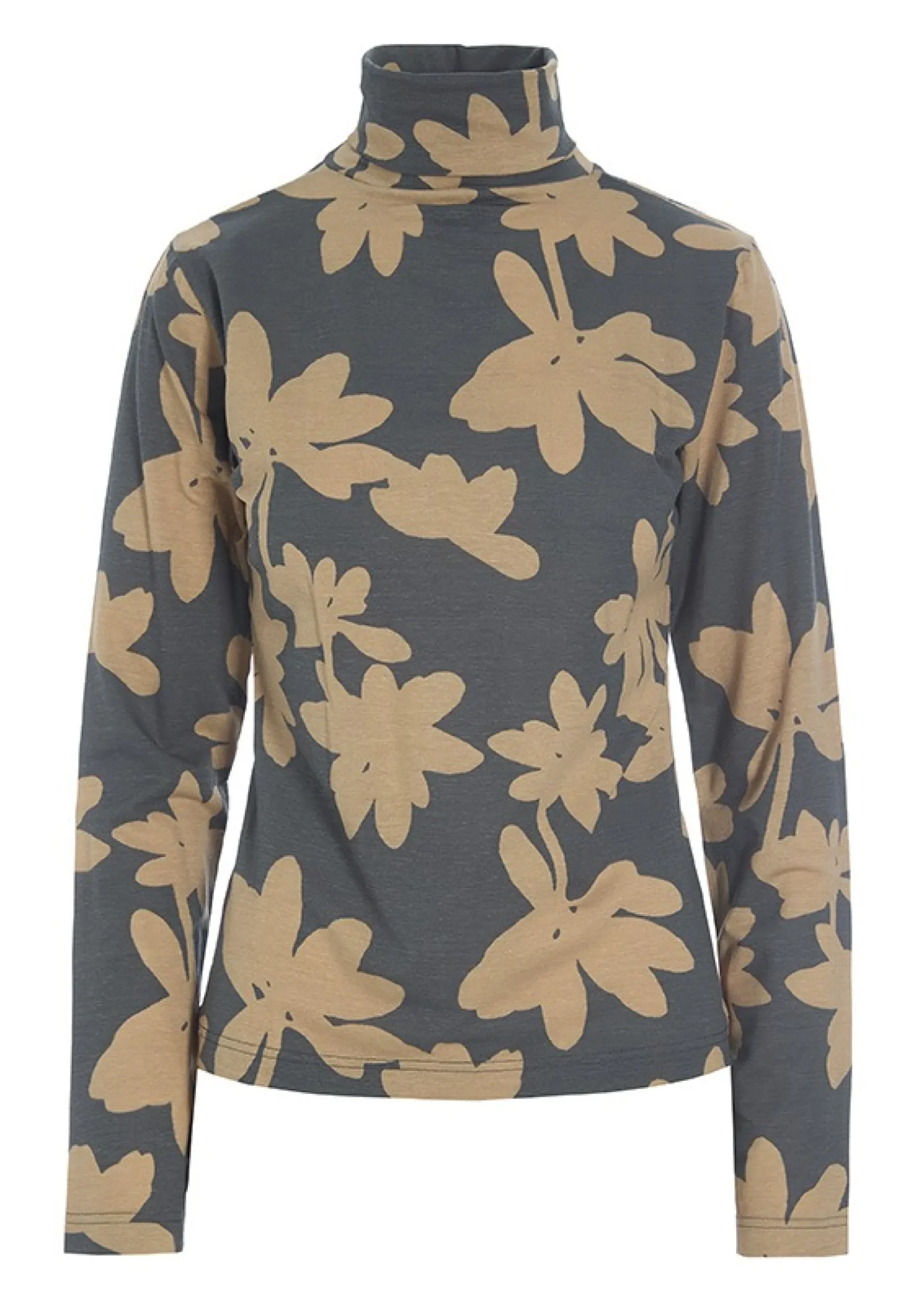 Bluse Med Rullekrave Og Et Spaendende Print. Det Er Oplagt At Lade Blusen Titte Frem Under En Skjorte, Kjole Eller Blazer For Et Lag-Pa-Lag Look. Den Blode Jerseykvalitet Gor Blusen Virkelig Blod Og Behagelig At Have Pa.