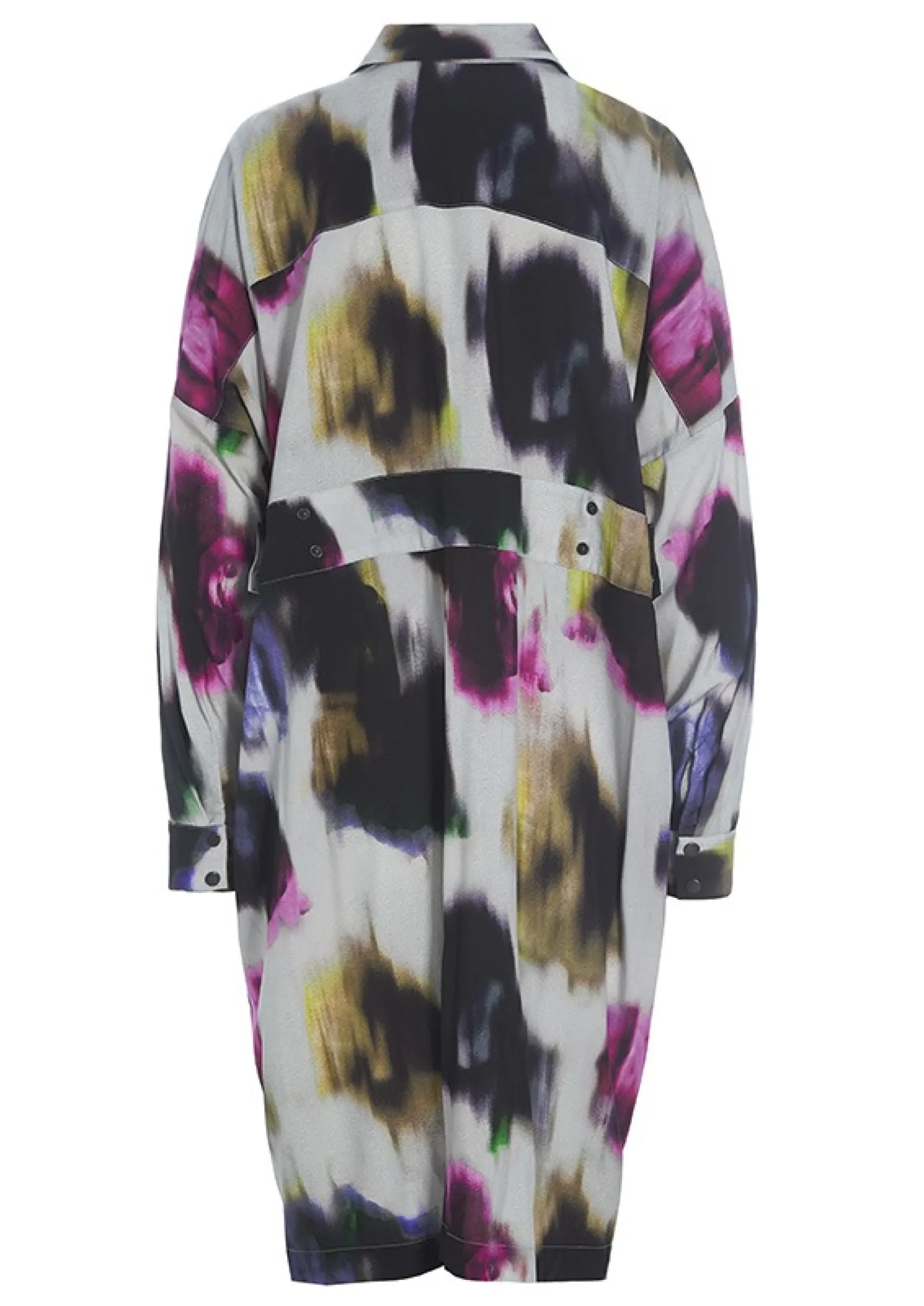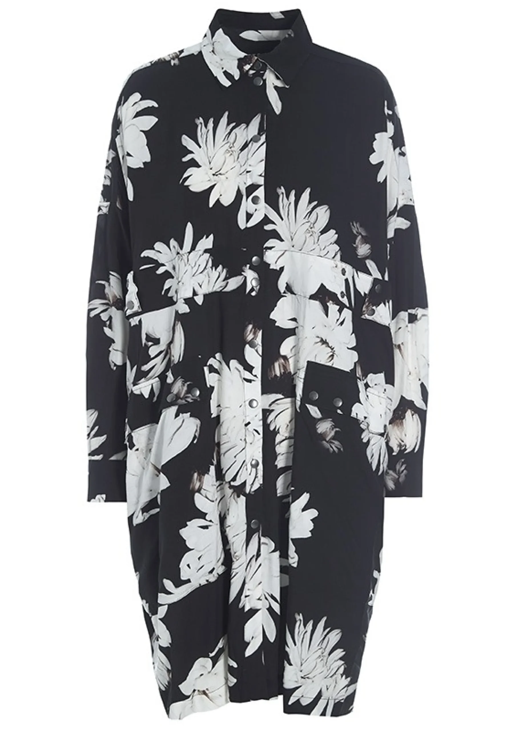 Skjortekjole Med Det Smukkeste Blomsterprint, Der Har Et Enkelt Og Grafisk Islaet. Kjolen Har Et Oversize Snit Og Store, Pasyede Lommer. Den Falder Flot Takket Vaere Den Lette Viskosekvalitet. Brug Skjortekjolen Over Et Par Bukser, Eller Saet Stromper Og Sneakers Til.