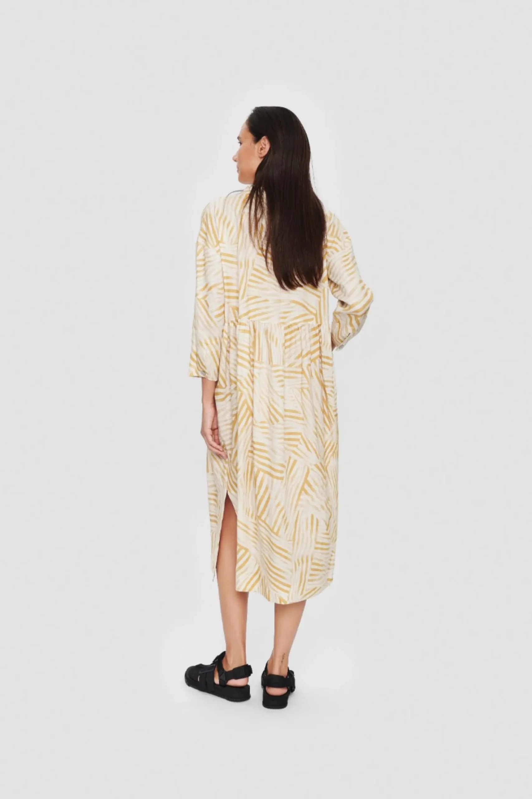 Denne Kjoles Snit Er Superenkelt, Og Printet Giver Et Flot Grafisk Udtryk. Kjolen Er Syet I En Sval Horkvalitet, Og Du Behover Ikke Andet End Laekre Sandaler, Sa Er Du Faerdig Og Klar Til Bade Sommerfest Og En Dag Pa Kontoret. En Hurtig Vej Til Et Gennemfort Og Elegant Look.