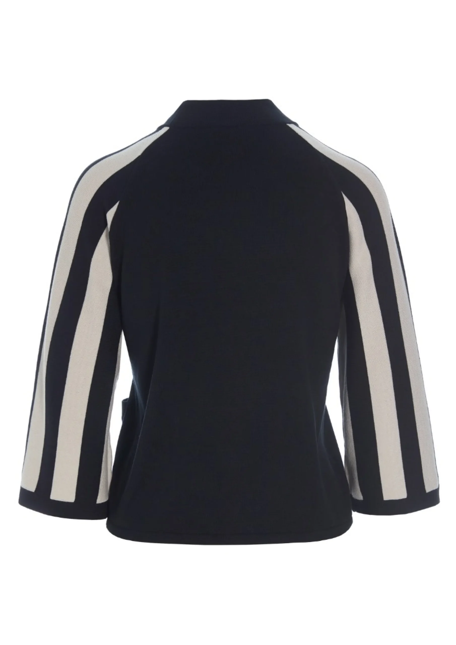 Hojhalset Bluse Med Striber Pa Aermerne, Hvilket Skaber En Flot Grafisk Effekt. Den Finstrikkede Bluse Er Enkel I Snittet Og Oplagt At Bruge Med Herrebukser For Et Klassisk Look. Eller Saet En Feminin Underdel Til, Som Kan Skabe Kontrast Til De Stringente Striber.