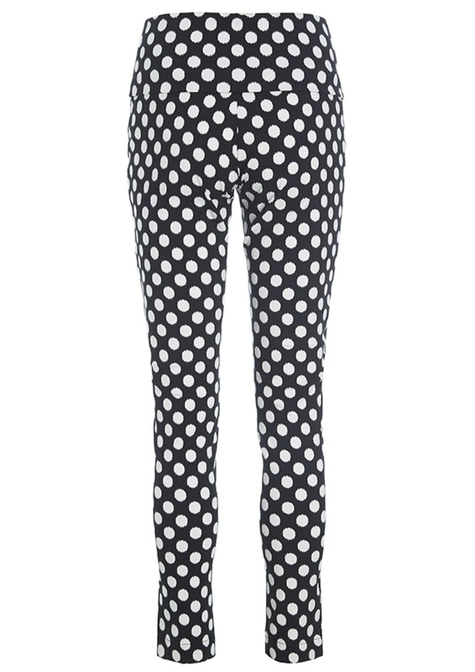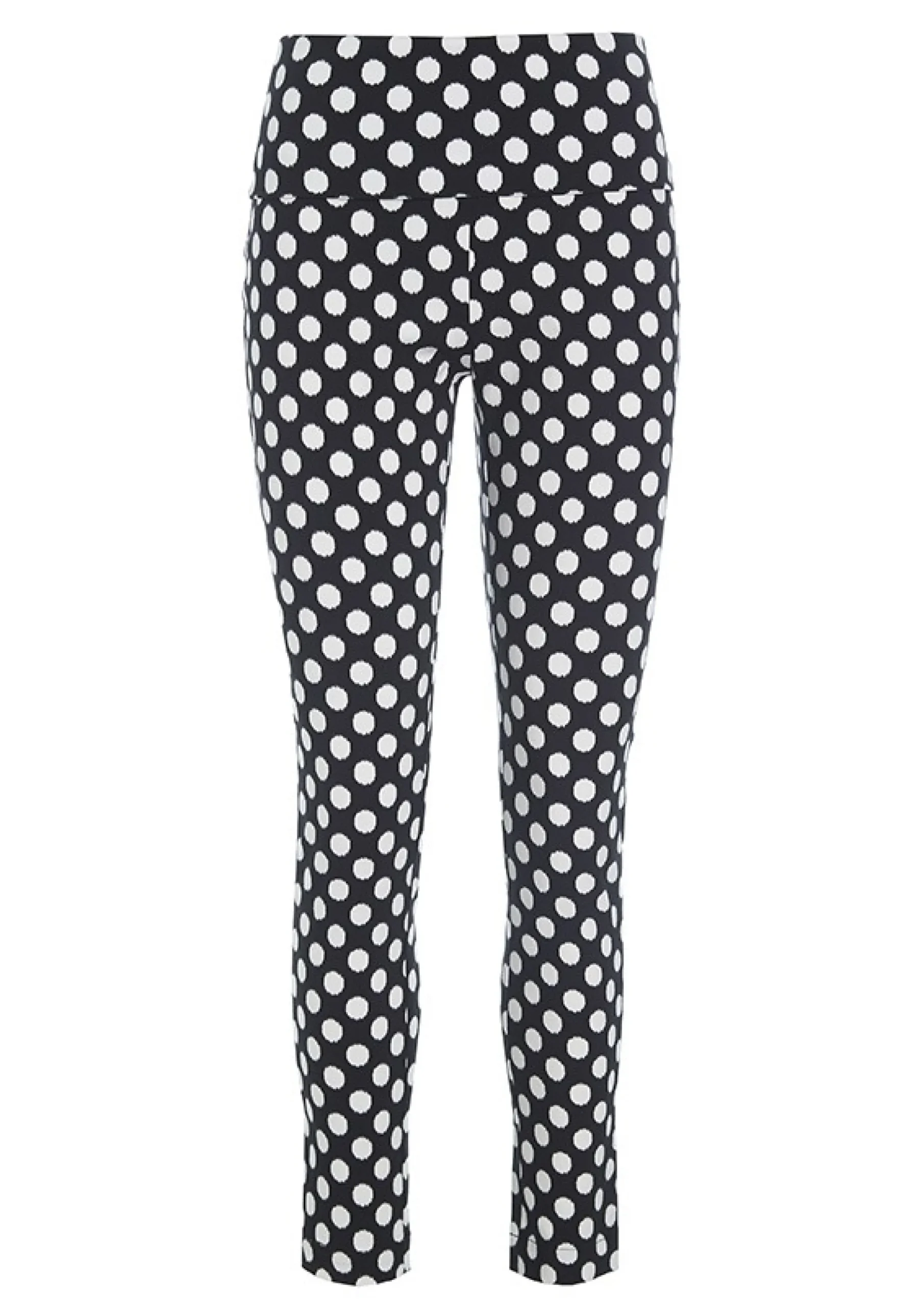 Meget Anvendelige Bukser Med Muntre Prikker. Bukserne Er Taetsiddende, Og Der Er Stretch I Stoffet, Hvilket Sikrer God Bevaegelighed. Den Brede Linning Kan Traekkes Op Over Maven Eller Foldes Ned For En Almindelig Taljehojde.