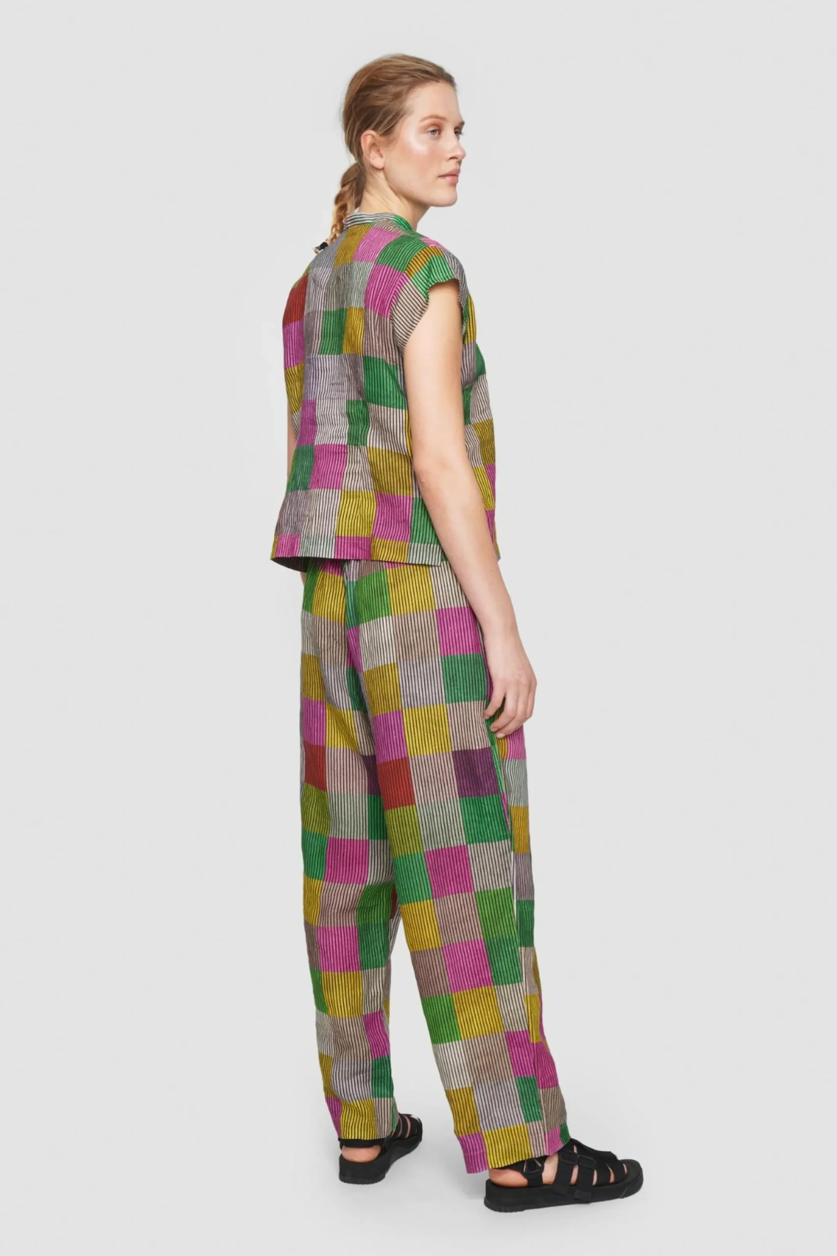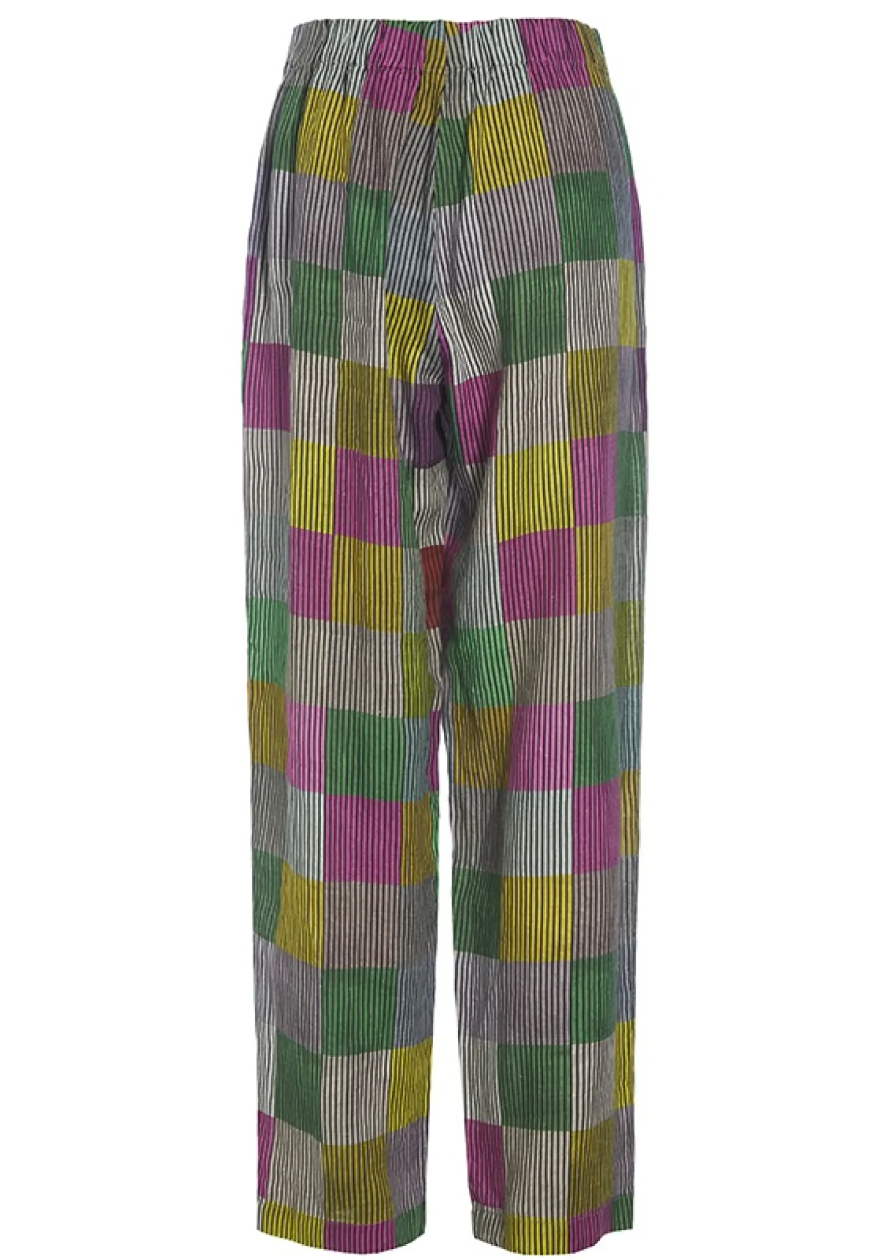 Lose Bukser Med Ternet Monster I Smukt Afstemte Nuancer Pa Stribet Baggrund. Bukserne Sidder Flot Til I Taljen. Kombiner Bukserne Med En Afslappet Hvid T-Shirt. Eller Lav Et Laekkert Saet Ved At Kombinere Med Den Matchende Chinese Chequers Skjorte.