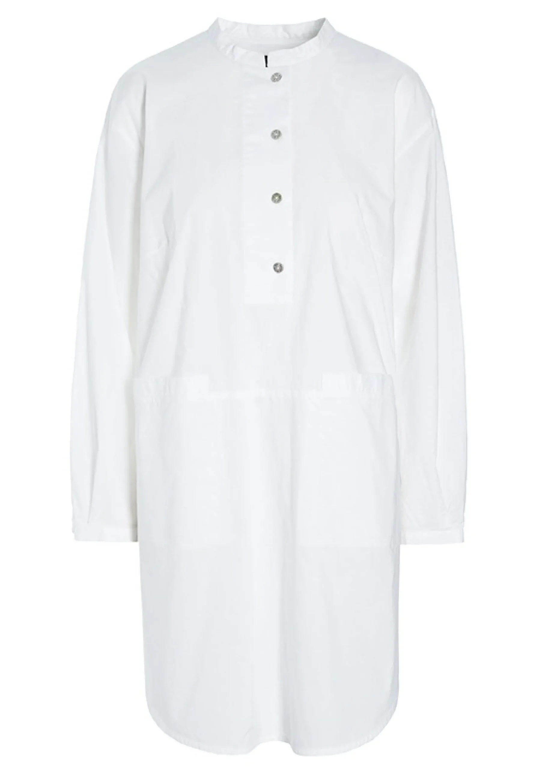 Lang Skjortebluse I Knitrende Laekker Bomuldskvalitet. Et Basiselement, Der Kan Anvendes Pa Rigtig Mange Mader. Brug Blusen Til Alt Fra Jeans Til Nederdel Og Shorts. Pa Varme Dage Kan Blusen Ogsa Bruges Som En Kort Kjole Blot Tilsat Sandaler Eller Ballerinaer.