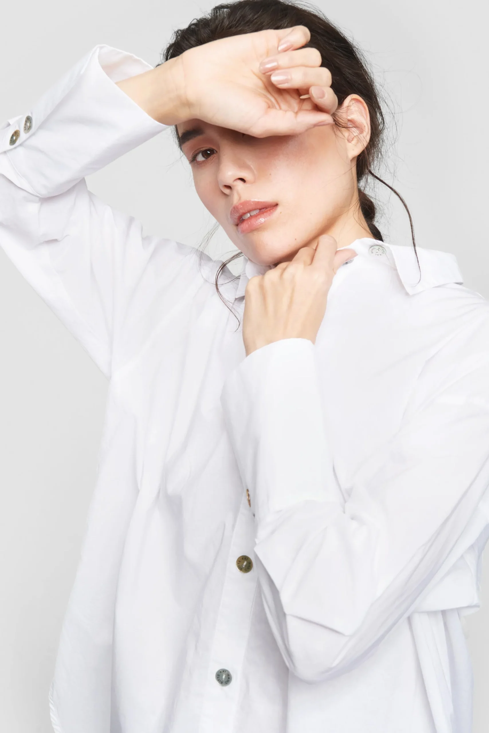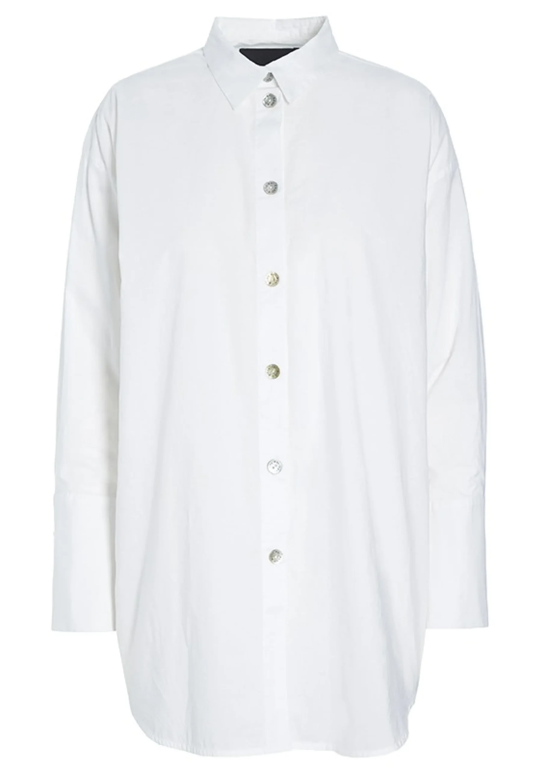 Skjorte I Knitrende Laekker Bomuldskvalitet. De Posede Aermer Med Brede Manchetter Gor Skjorten Cool Og Elegant. Et Basiselement, Der Kan Anvendes Pa Rigtig Mange Mader. Brug Skjorten Til At Opgradere Et Par Jeans, Eller Saet Den Til Herrebukser For Et Flot Joblook.