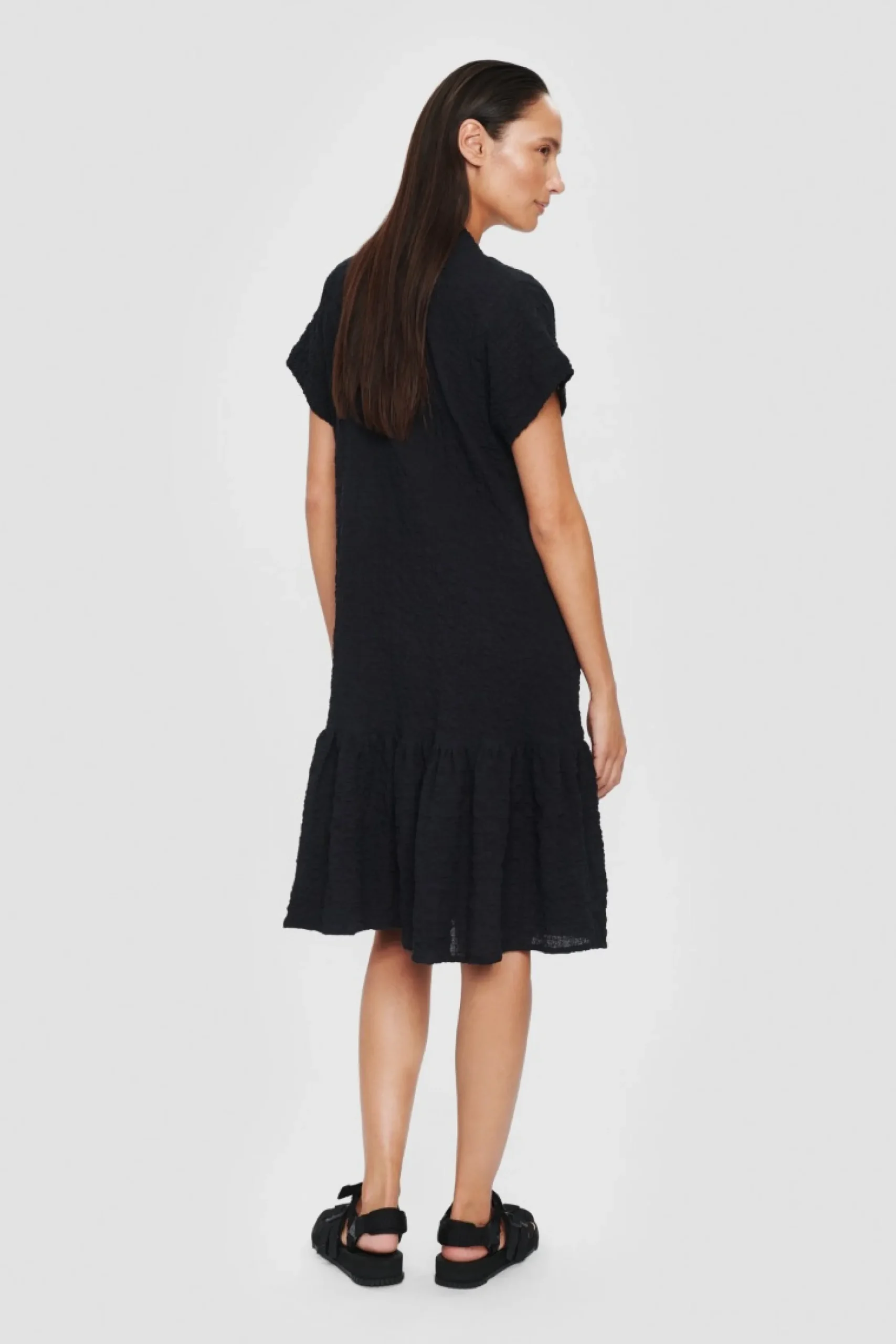 Virkelig Laekker Kjole Med Oversize Pasform Og En Bred Flaese Forneden, Der Giver Flot Volumen. Et Godt Bud Pa En Sort Kjole, Der Kan Folge Dig Til Hvad Som Helst Og Nar Som Helst. Alt Du Behover At Tilsaette Er Et Par Smukke Sandaler, Og Du Har Et Elegant Look.