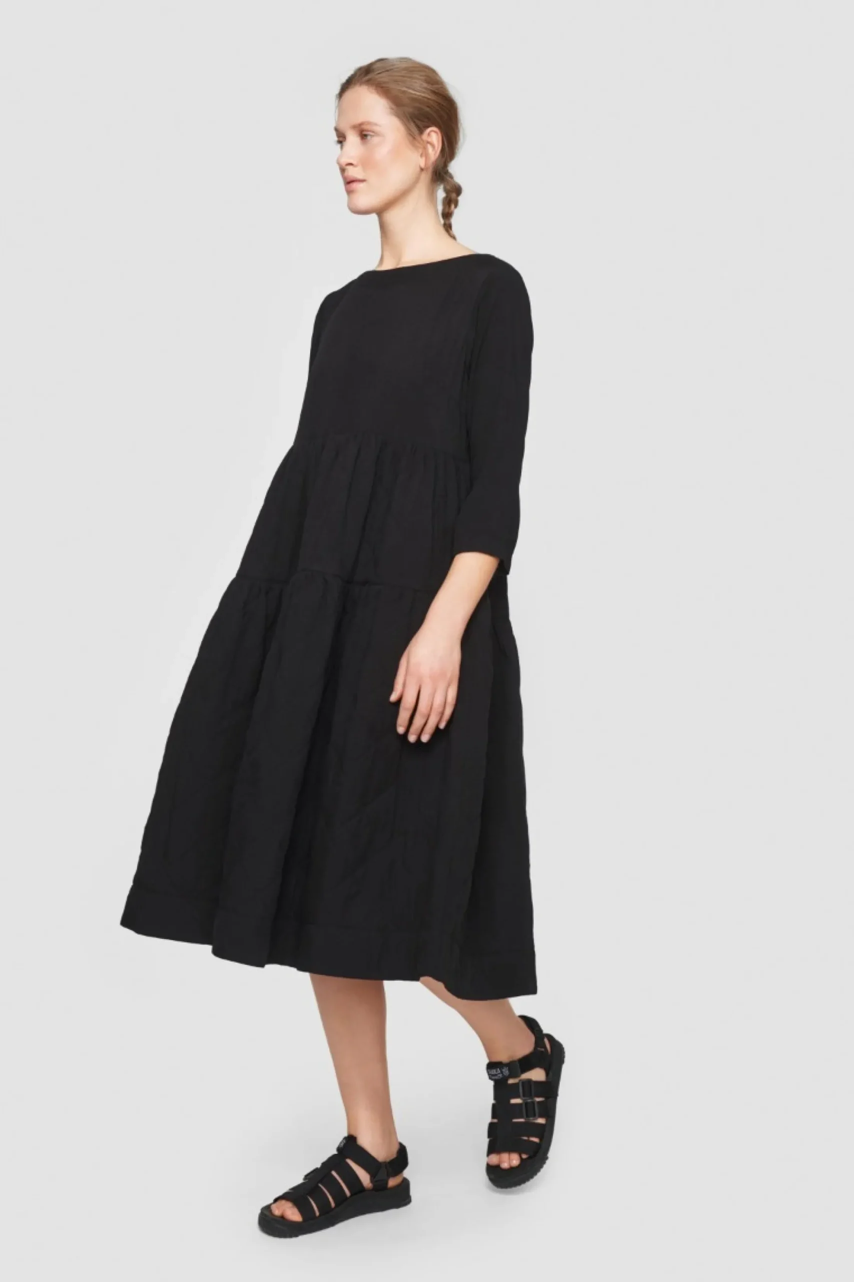 Et Kunststykke Af En Kjole Med Et Vatteret Skort, Der Giver En Flot Og Dramatisk Volumen. Med Denne Kjole Far Du Enkelt Og Hurtigt Et Smart Look. Du Behover Blot Saette Sko Til Efter Humor. Et Godt Bud Pa En Sort Klassiker, Der Vil Vaere En Redning Ved Enhver Anledning.