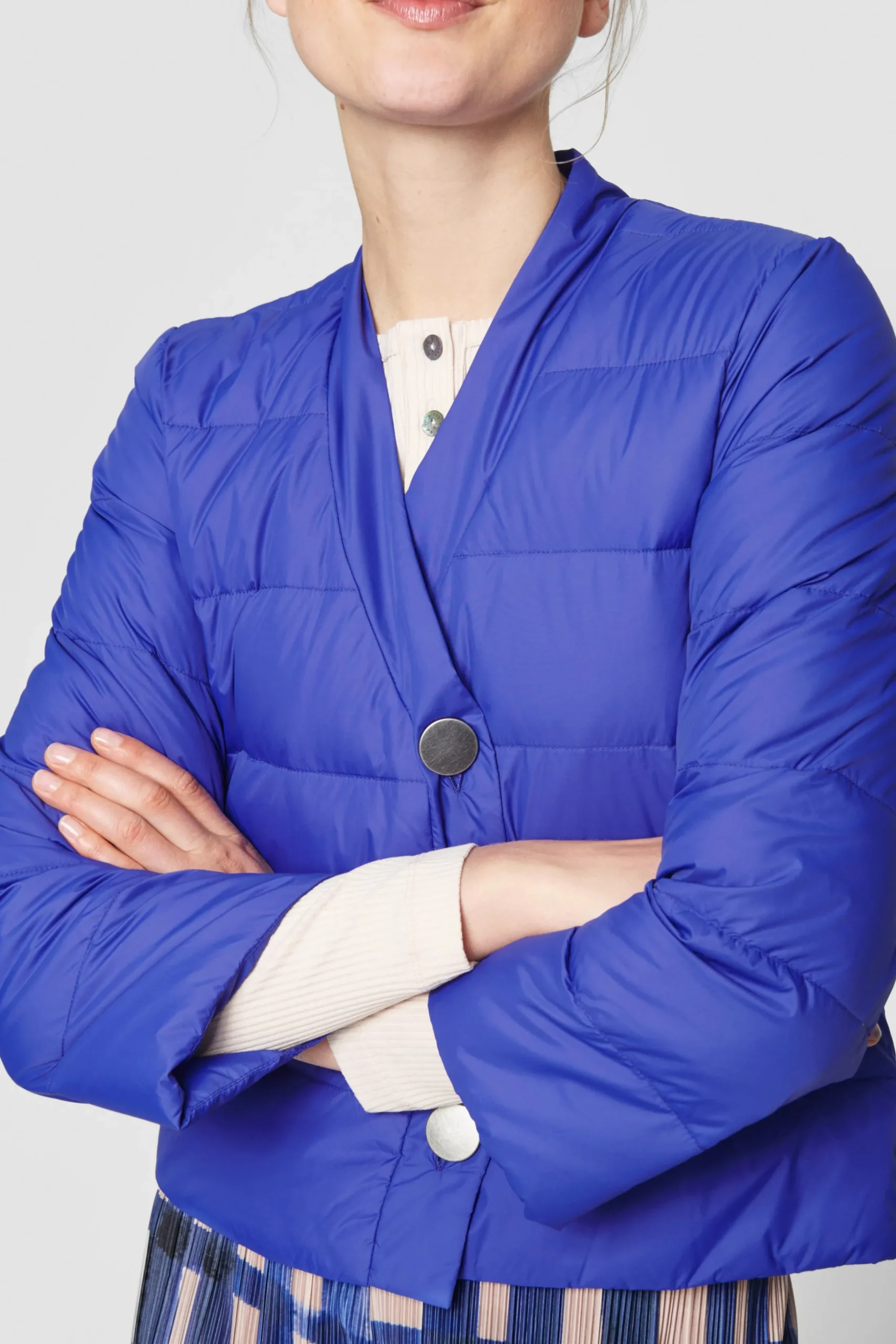 Kort Dunjakke I Den Letteste, Blode Kvalitet. Det Er Som At Have En Sky Pa – Dog En Del Lunere. Jakken Har Facon Som En Cardigan Og Er Forsynet Med Asymmetrisk Knaplukning. Det Giver Et Enkelt Udtryk. Perfekt Til Overgangsperioden Og Pa Kolige Forarsdage.