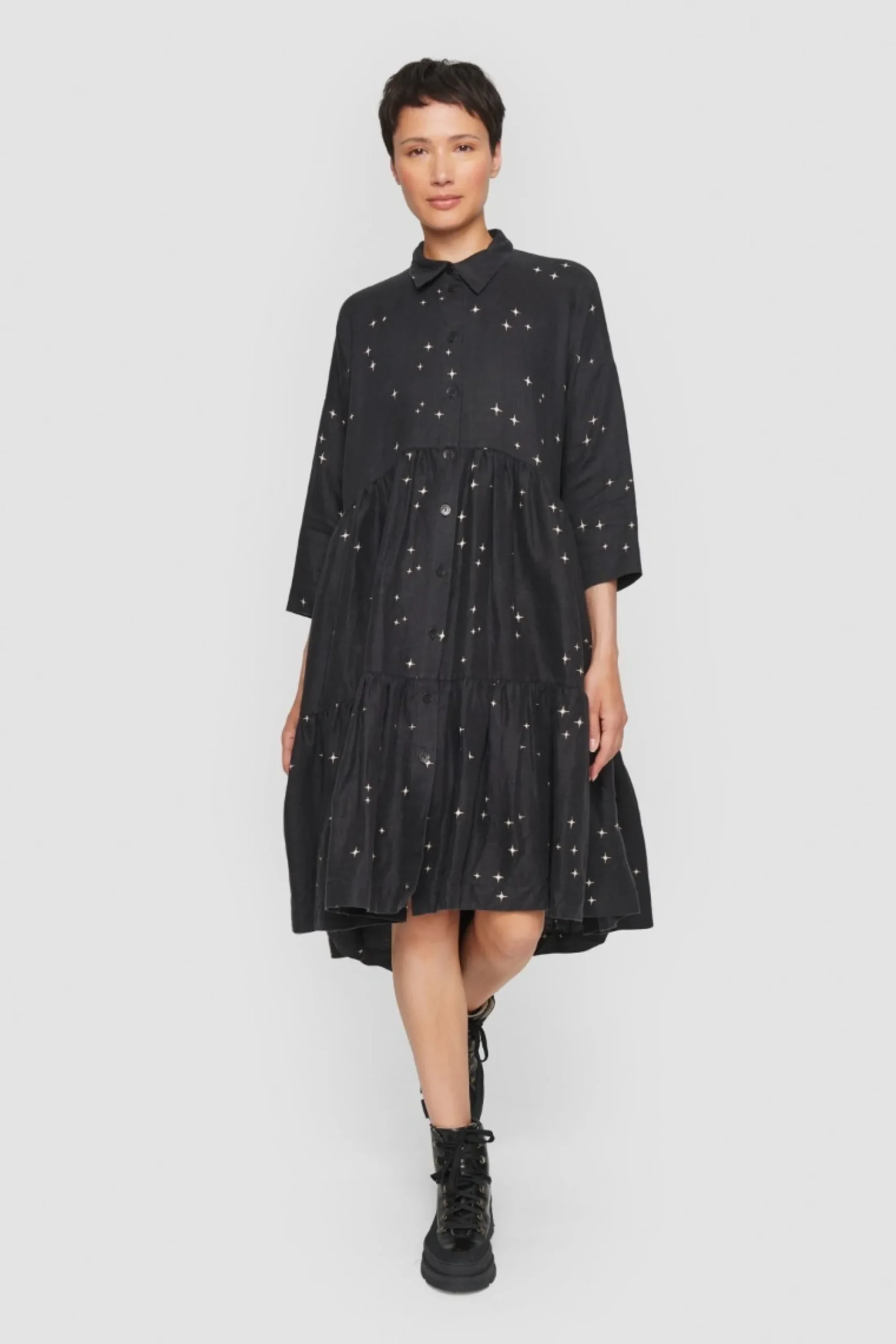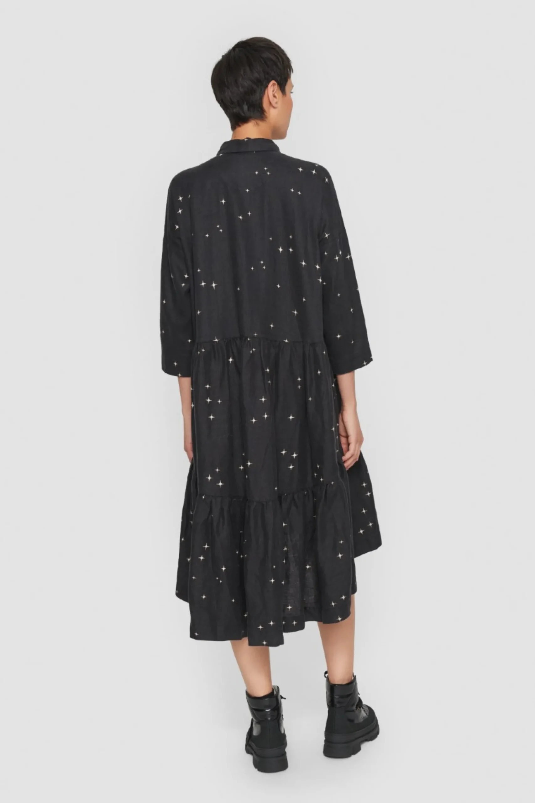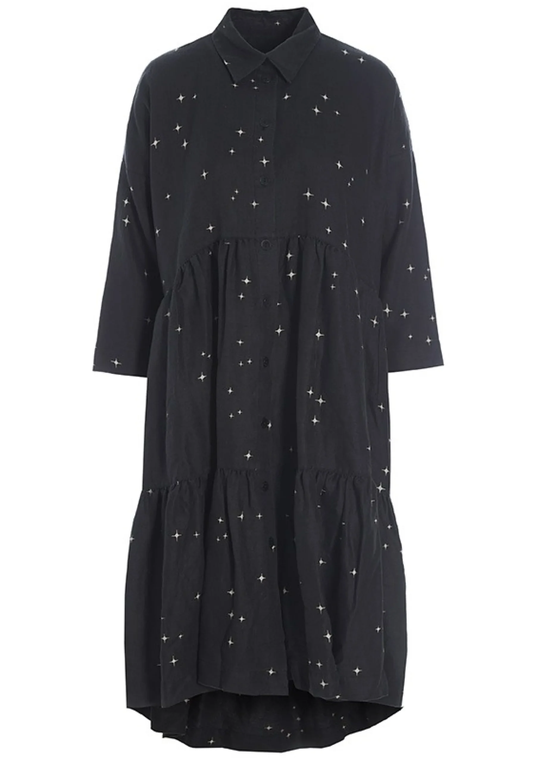 Som En Magisk Nattehimmel Funkler De Sma Stjerner Pa Denne Fine Frakkekjole, Der Har Et Voluminost Udtryk Og Falder Smukt Om Kroppen. Med Denne Kjole Bliver Du Velklaedt I En Fart. Tilsaet Blot Stromper, Herresko Eller Sneakers, Og Du Er Klar Til Enhver Lejlighed.