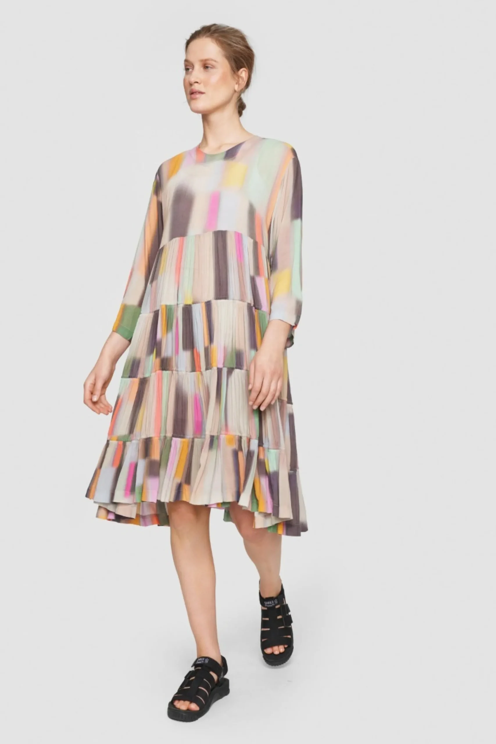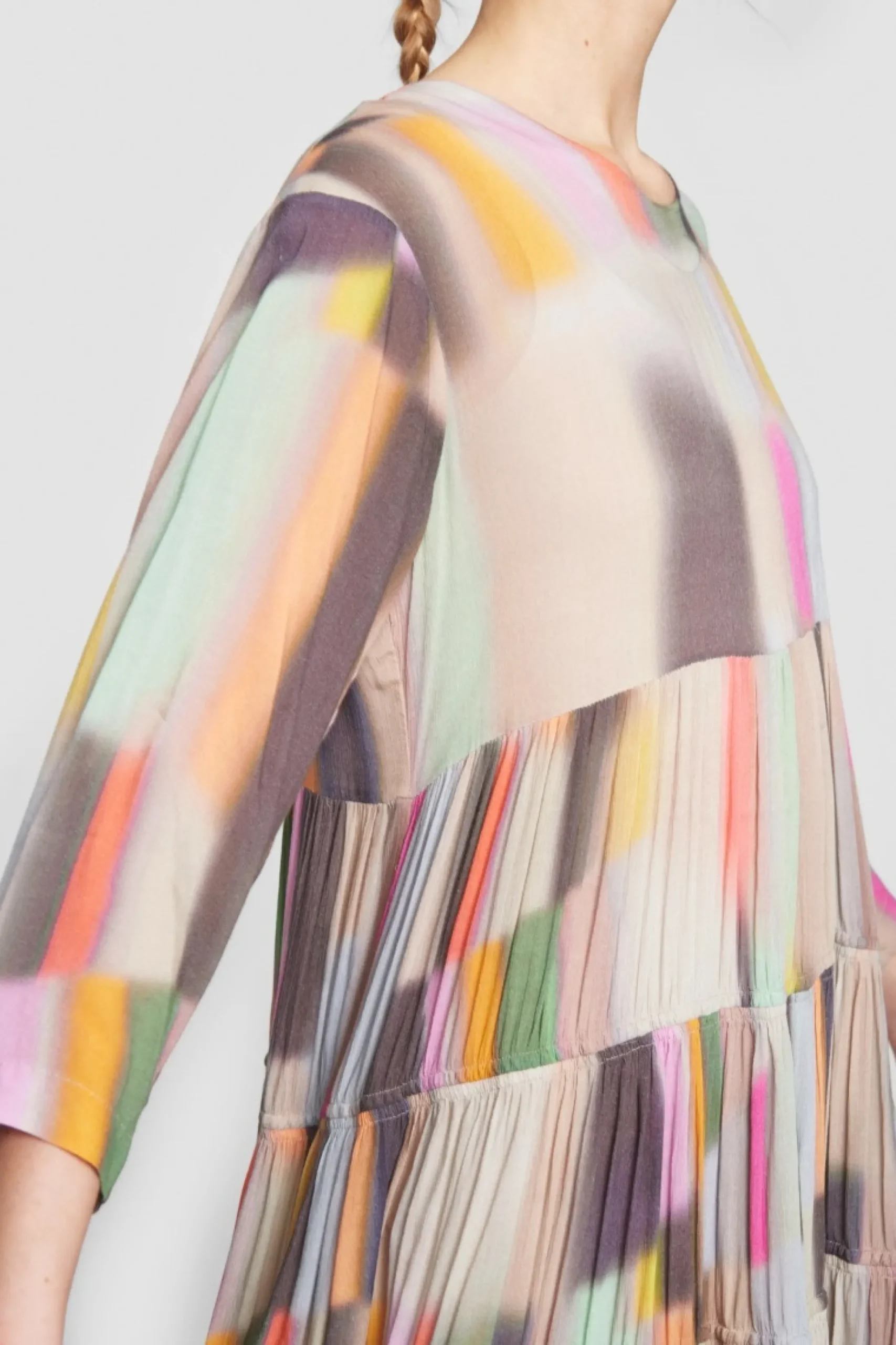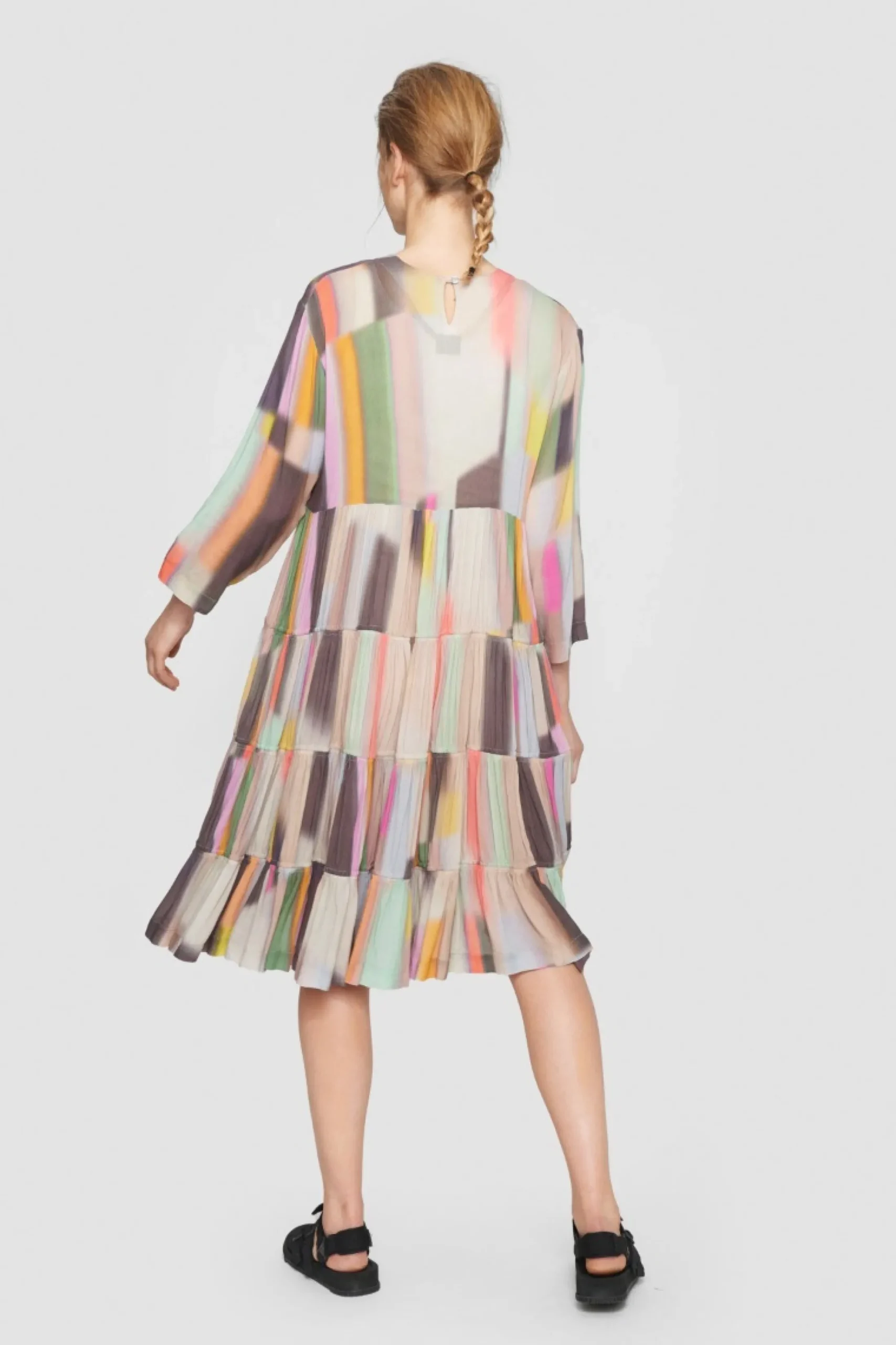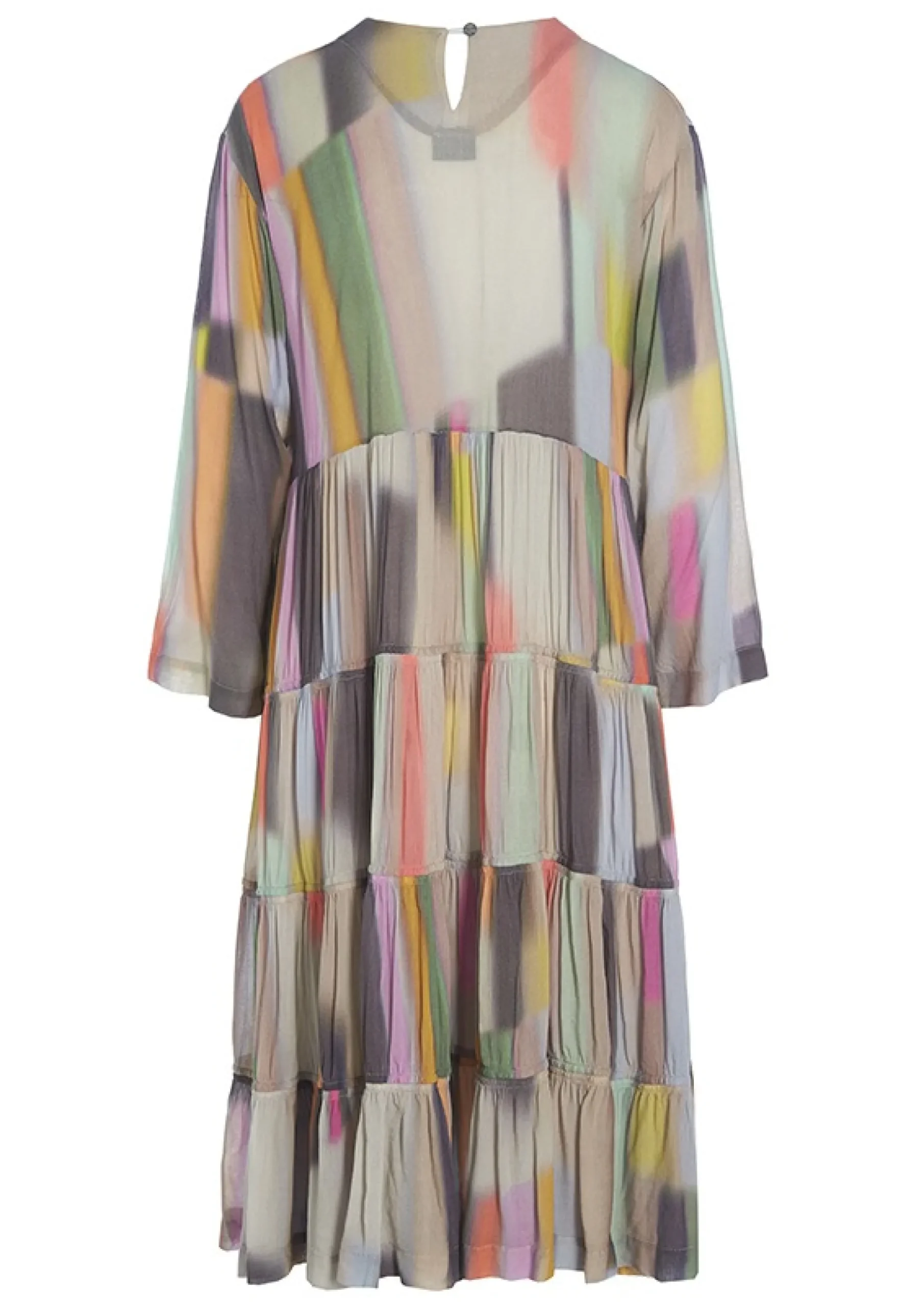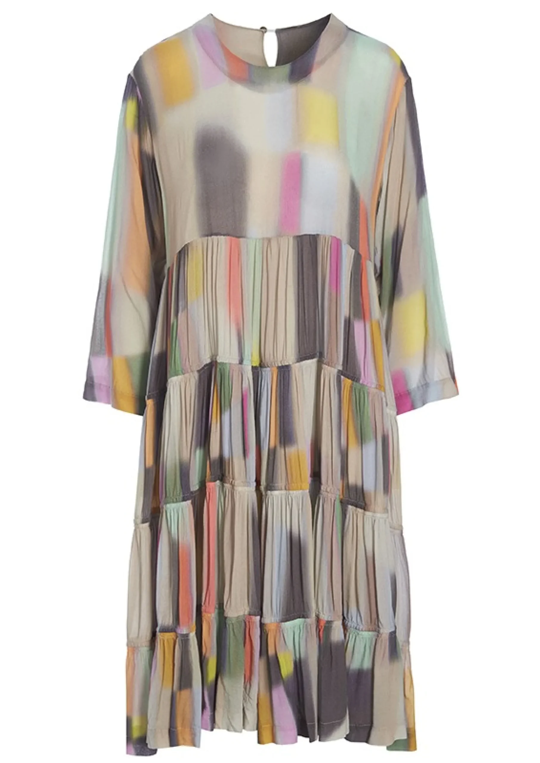 Denne Kjole Vil Med Sine Mange Fine Farver Vaere Et Nogleelement I Garderoben. Det Er Oplagt At Matche Den Med Jakker, Stromper, Sko Eller Tasker, Der Rammer En Af De Smukke Nuancer. Kjolens Skort Har Masser Af Vidde Og Falder Flatterende Om Kroppen.