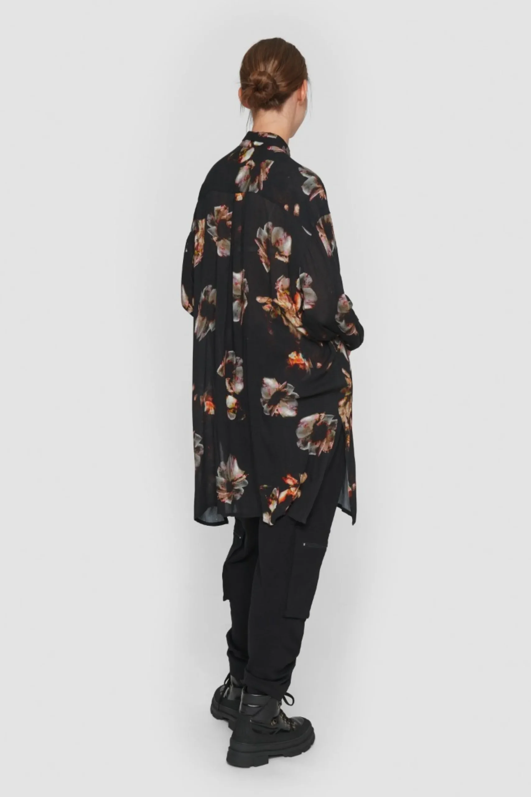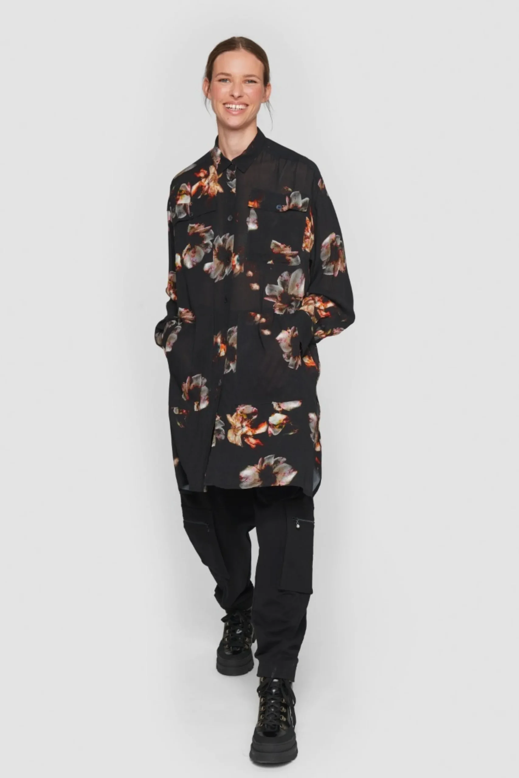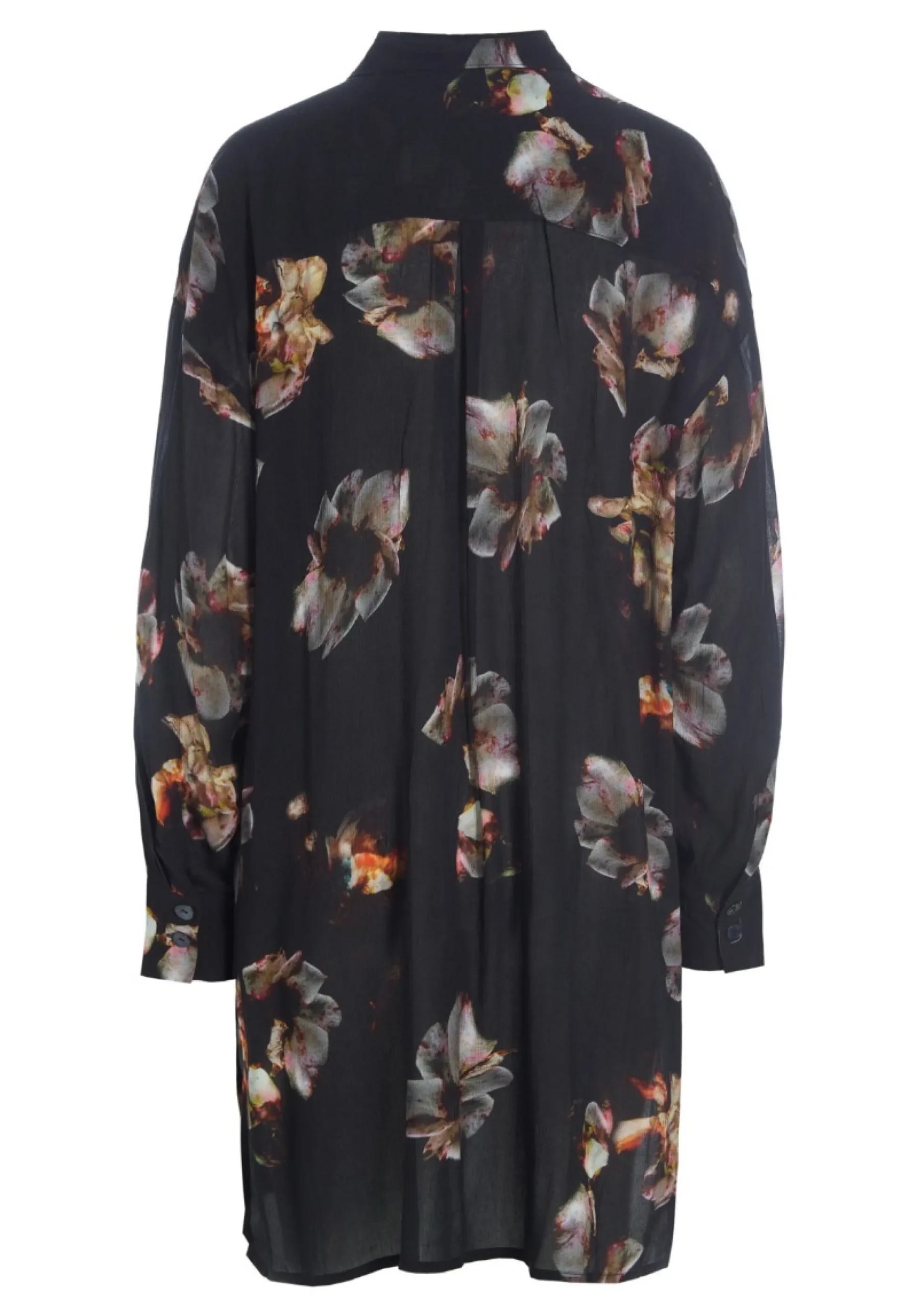 Lang Skjorte I Dejlig Blod Kvalitet Og Med Et Abstrakt Blomsterprint I Fine Nuancer. Skjortens Laengde Gor Det Oplagt At Bruge Den Med Taetsiddende Bukser Under. Og Saetter Du Kraftige Stromper Eller Leggins Til, Kan Den Ogsa Bruges Som Kort Kjole.