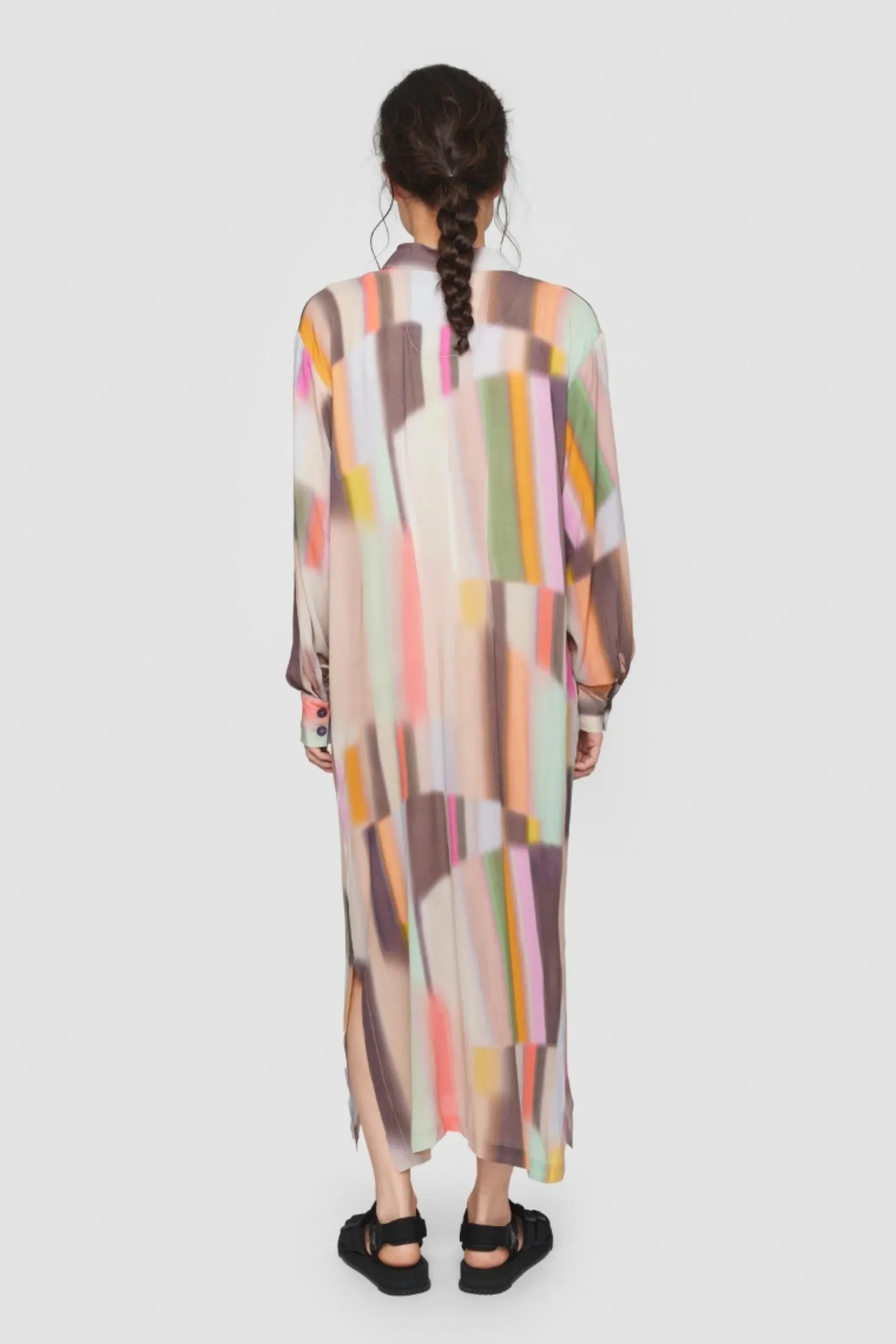 Lang Skjortekjole Med Et Farverigt Print, Der Gor Det Oplagt At Matche Med Jakker, Stromper, Sko Eller Tasker, Der Rammer En Af De Smukke Nuancer. Brug Kjolen Over Et Par Jeans Eller Brede Bukser Og Pa Varme Dage Alene, Kun Tilsat Flade Sandaler.
