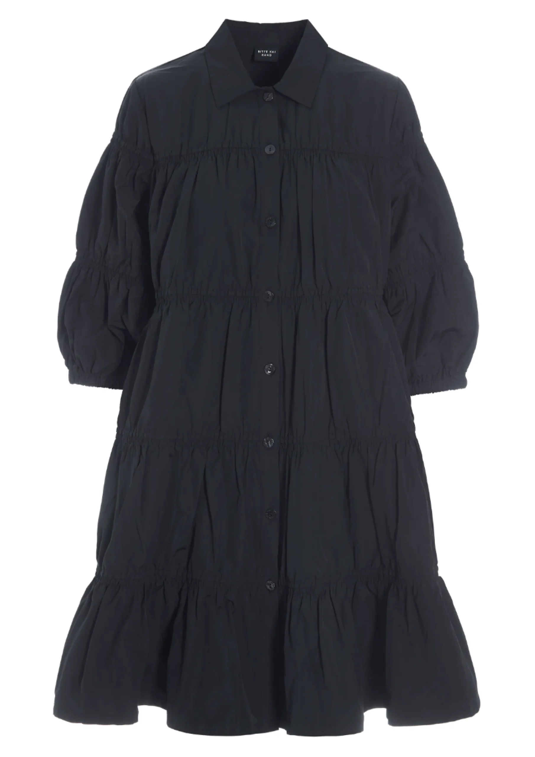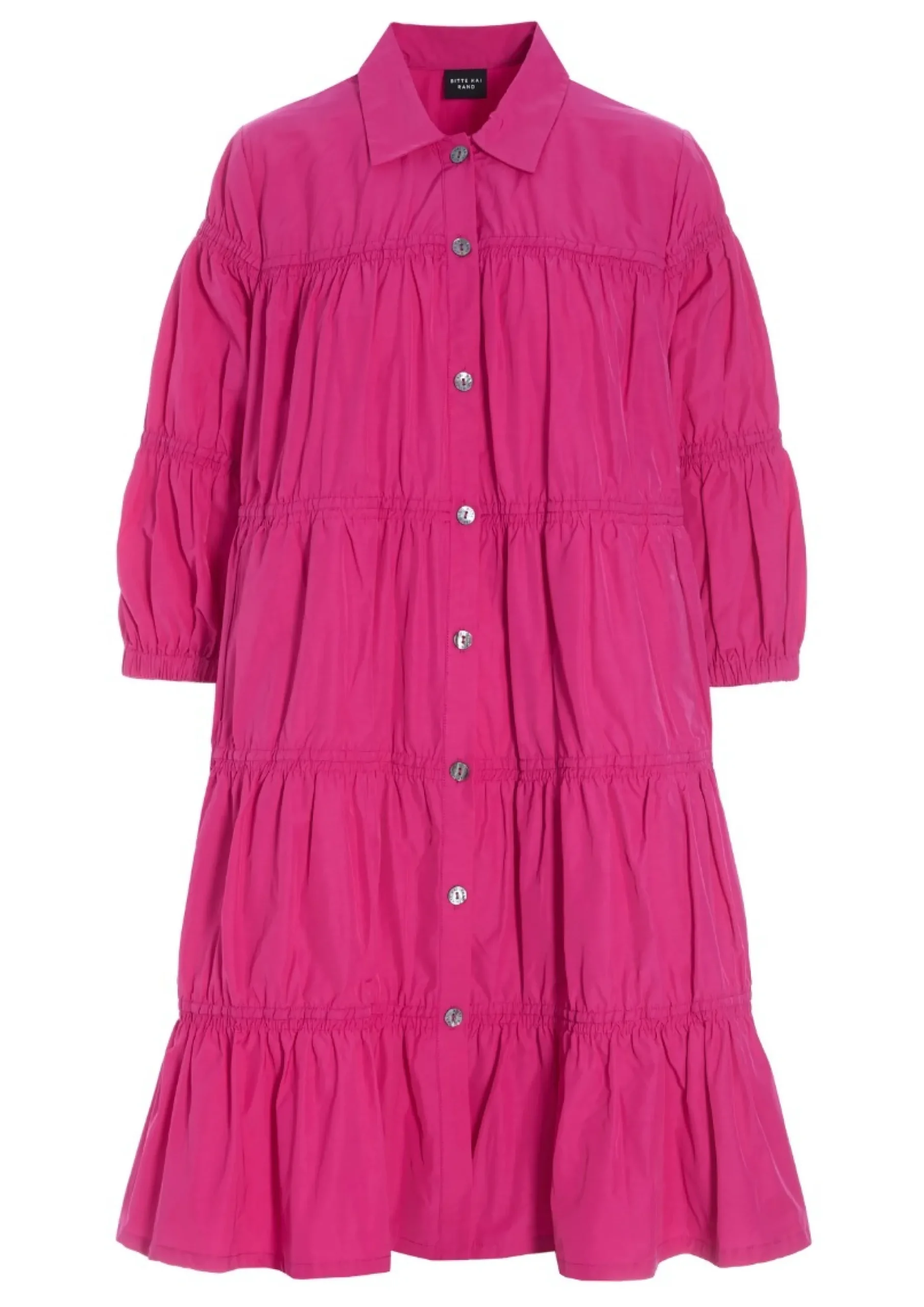 Flot Kjole Syet I Paneler Med Rynkeeffekt, Der Giver Et Voluminost Udtryk. Kjolen Er Cool Blot Tilsat Herresko Eller Ballerinaer. Og Opgraderer Du Med Hoje Haele, Er Du Lynhurtig Klar Til En Aften I Byen.