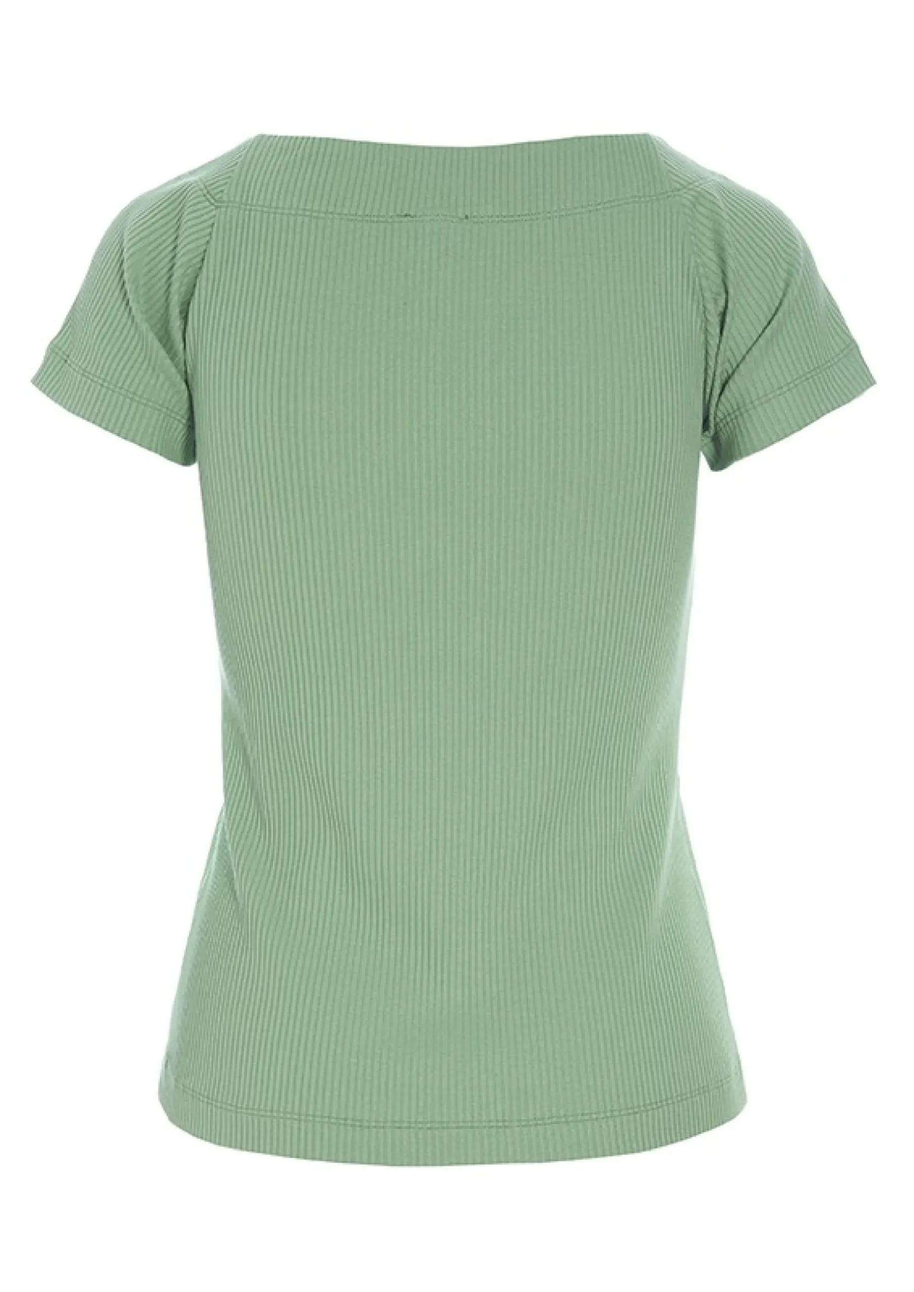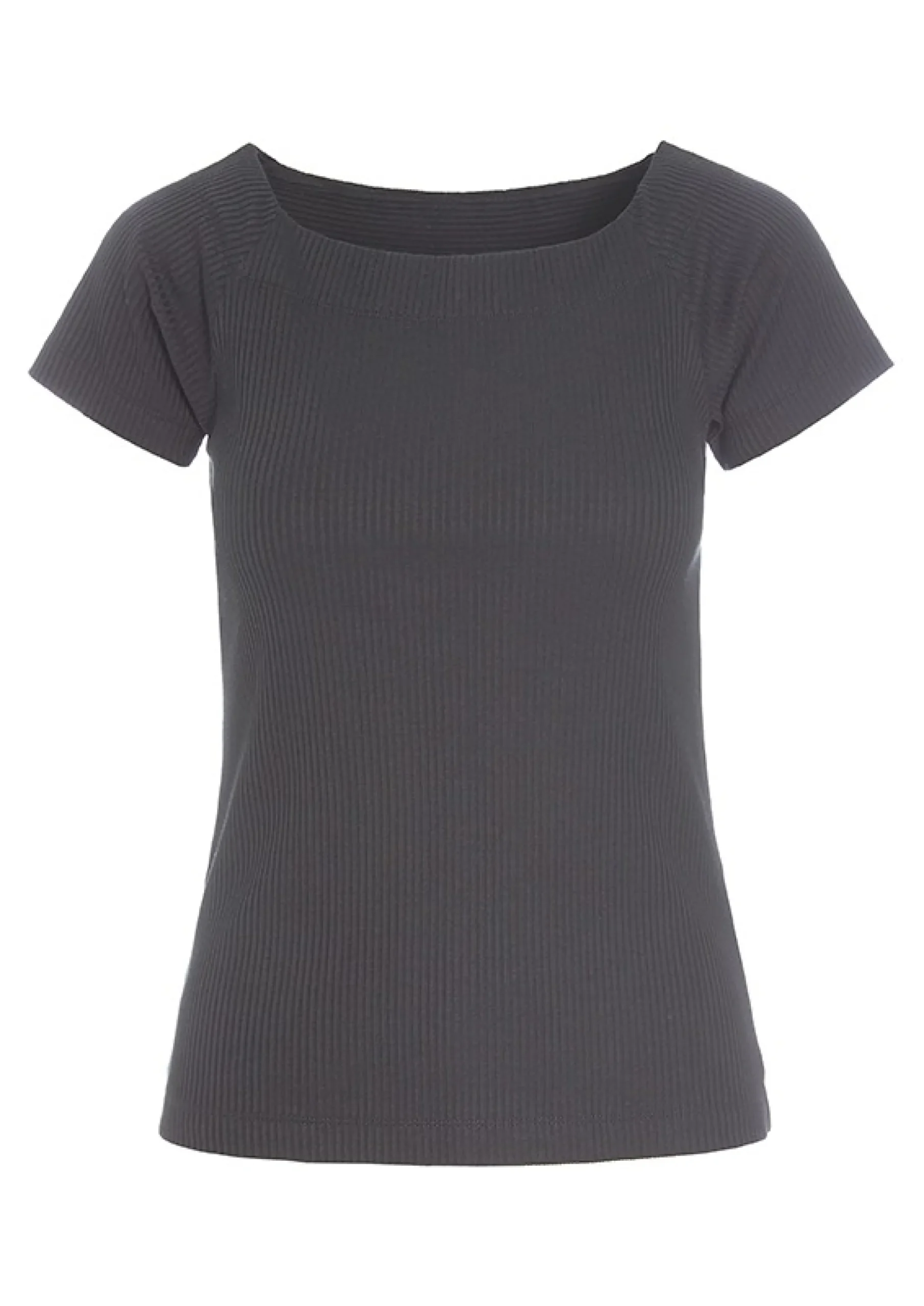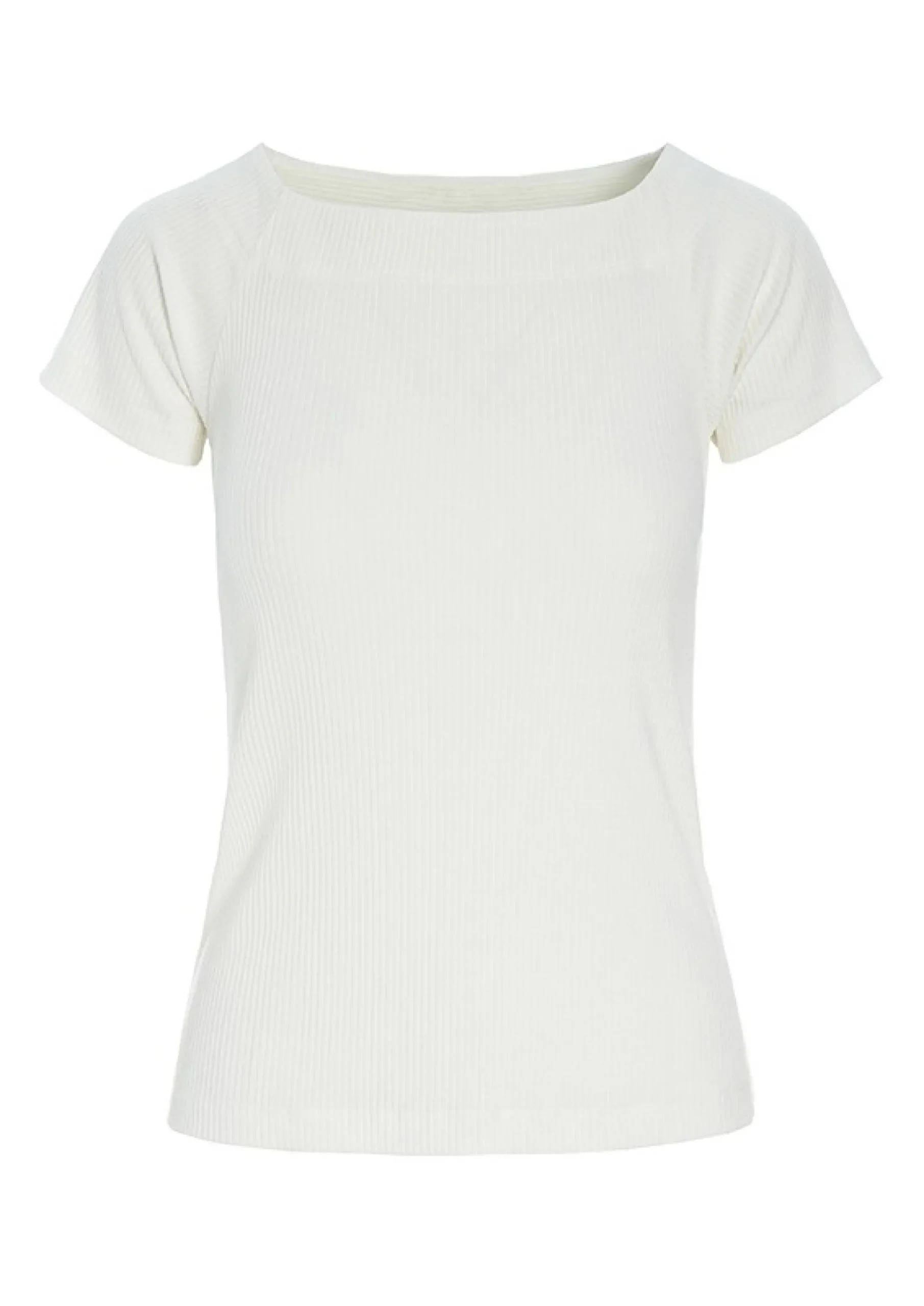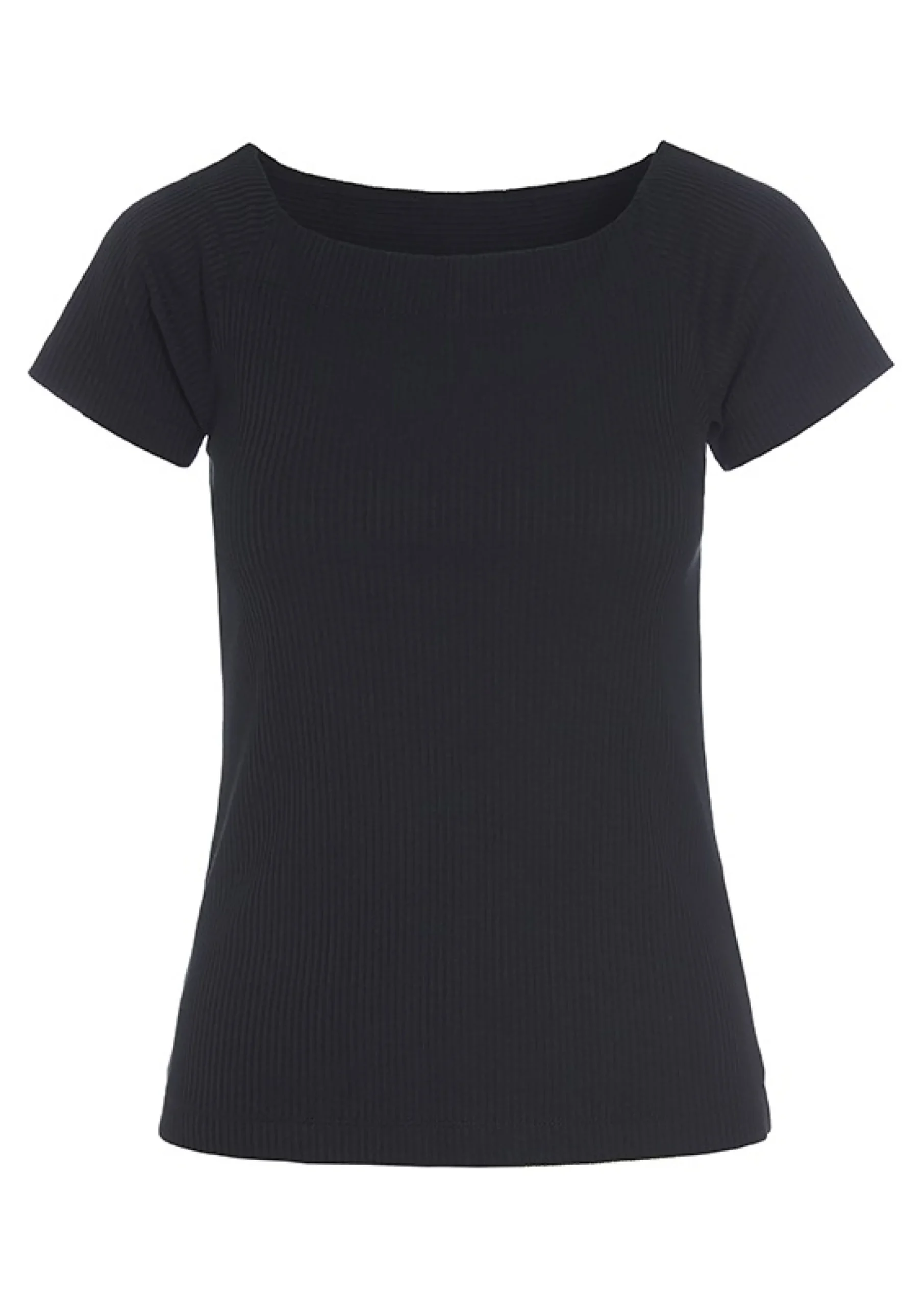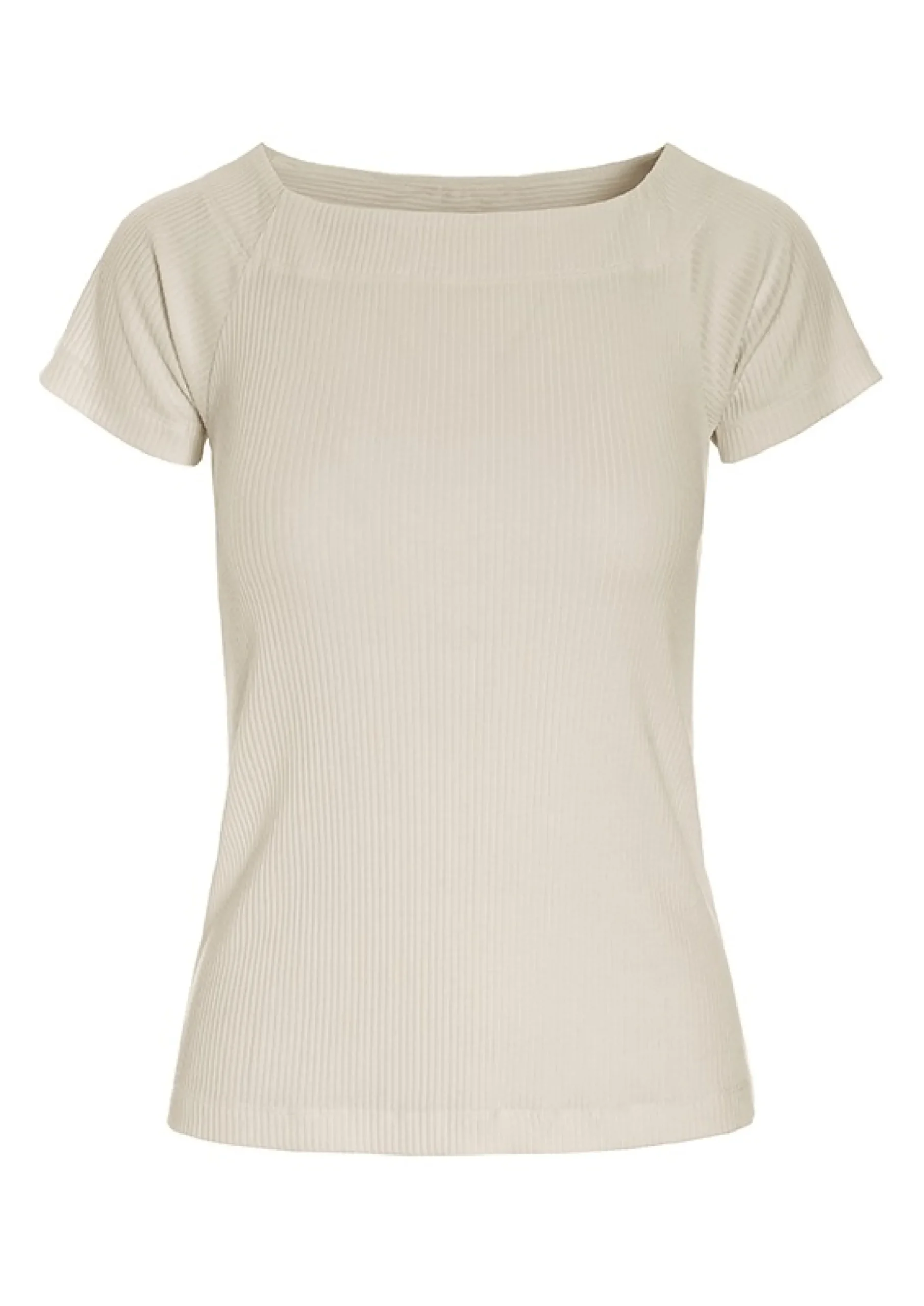 Ribjersey T-Shirt I Blod Kvalitet Tilsat Stretch, Som Far Pasformen Til At Holde Sig Flot. T-Shirten Har Et Enkelt Udtryk, Hvilket Gor Den Meget Anvendelig. En Aegte Yndlings-T-Shirt, Som Er Oplagt At Bruge Til Et Lag-Pa-Lag-Look Eller Tilsat Shorts Eller Nederdel Pa Lune Dage.