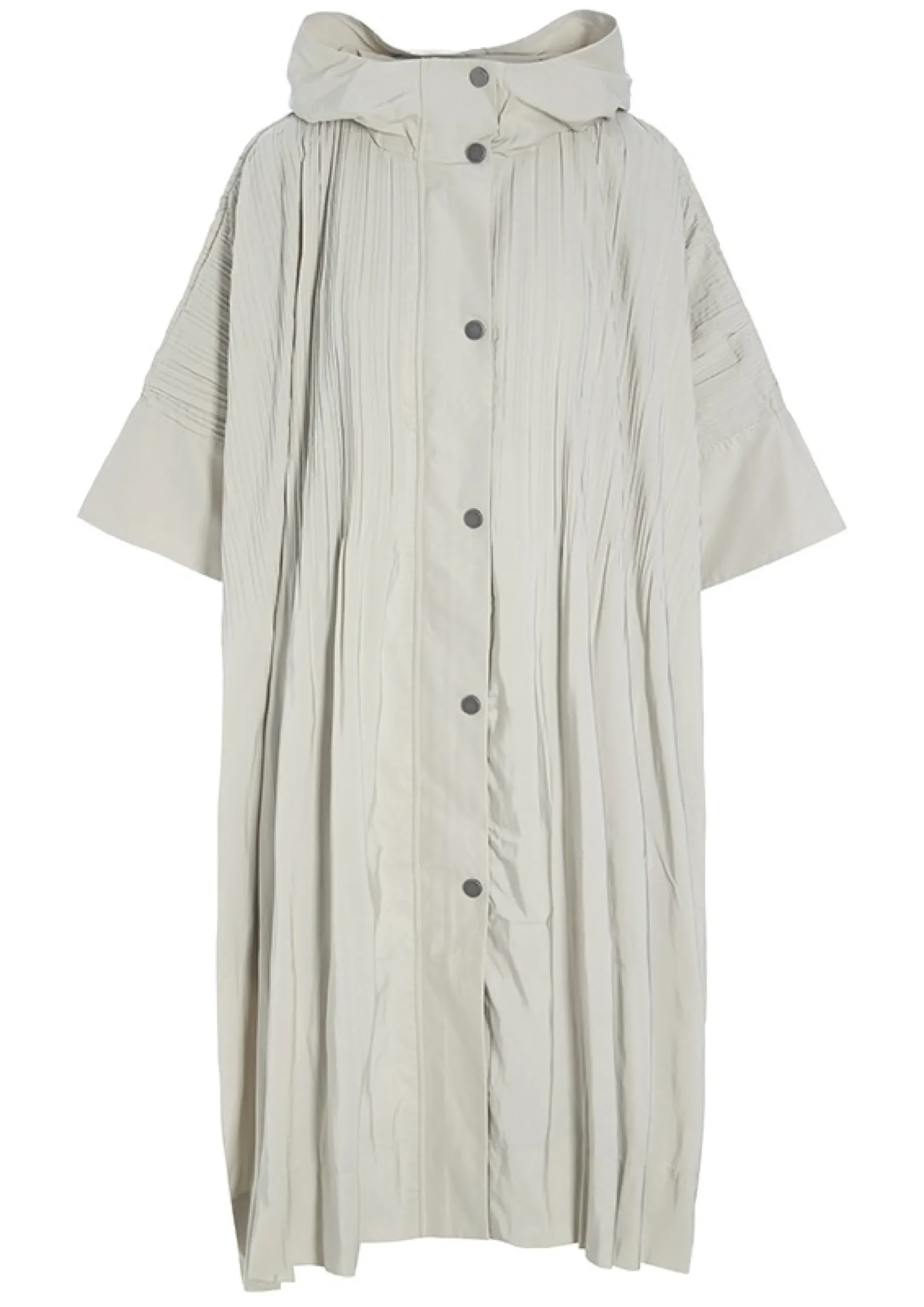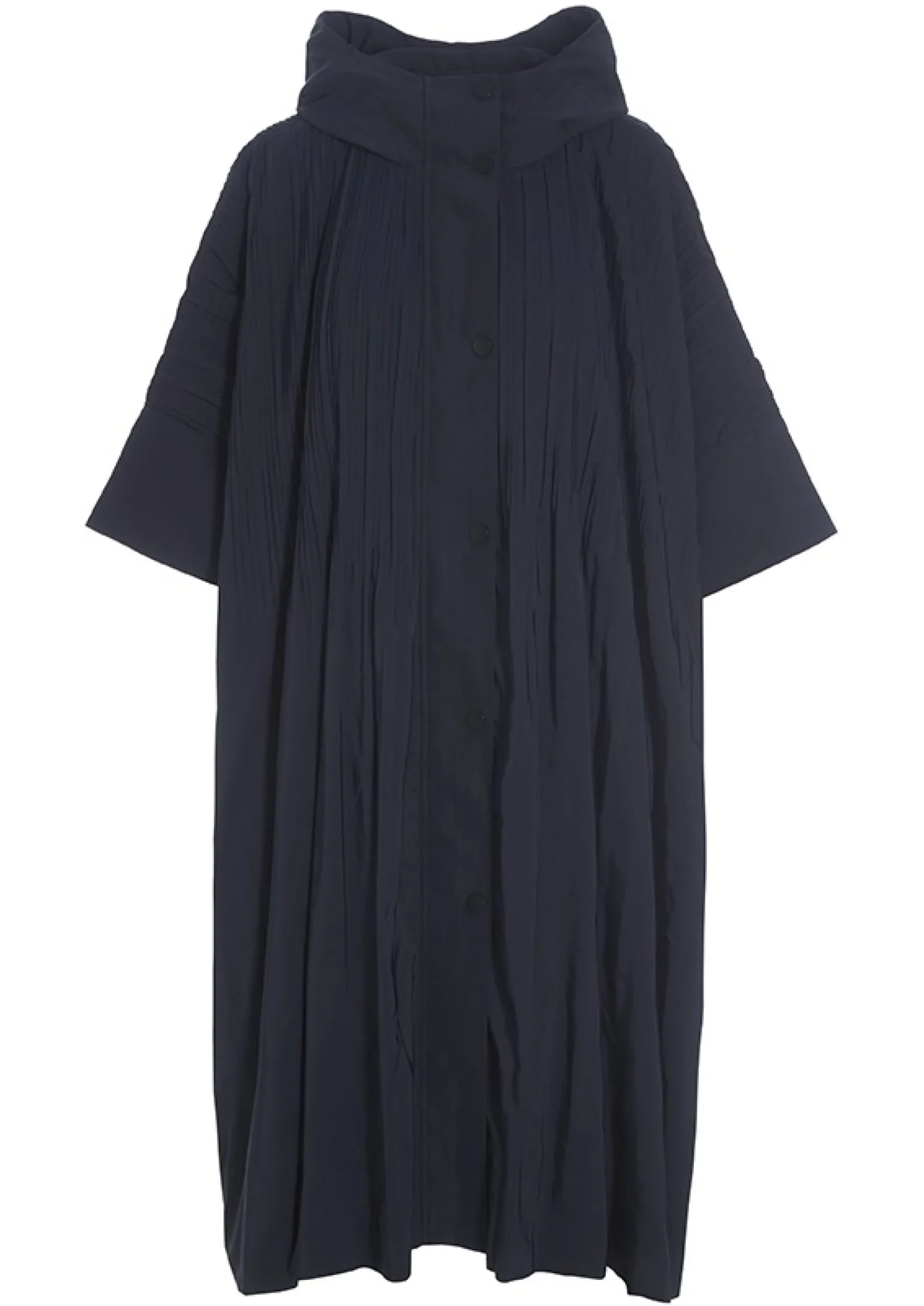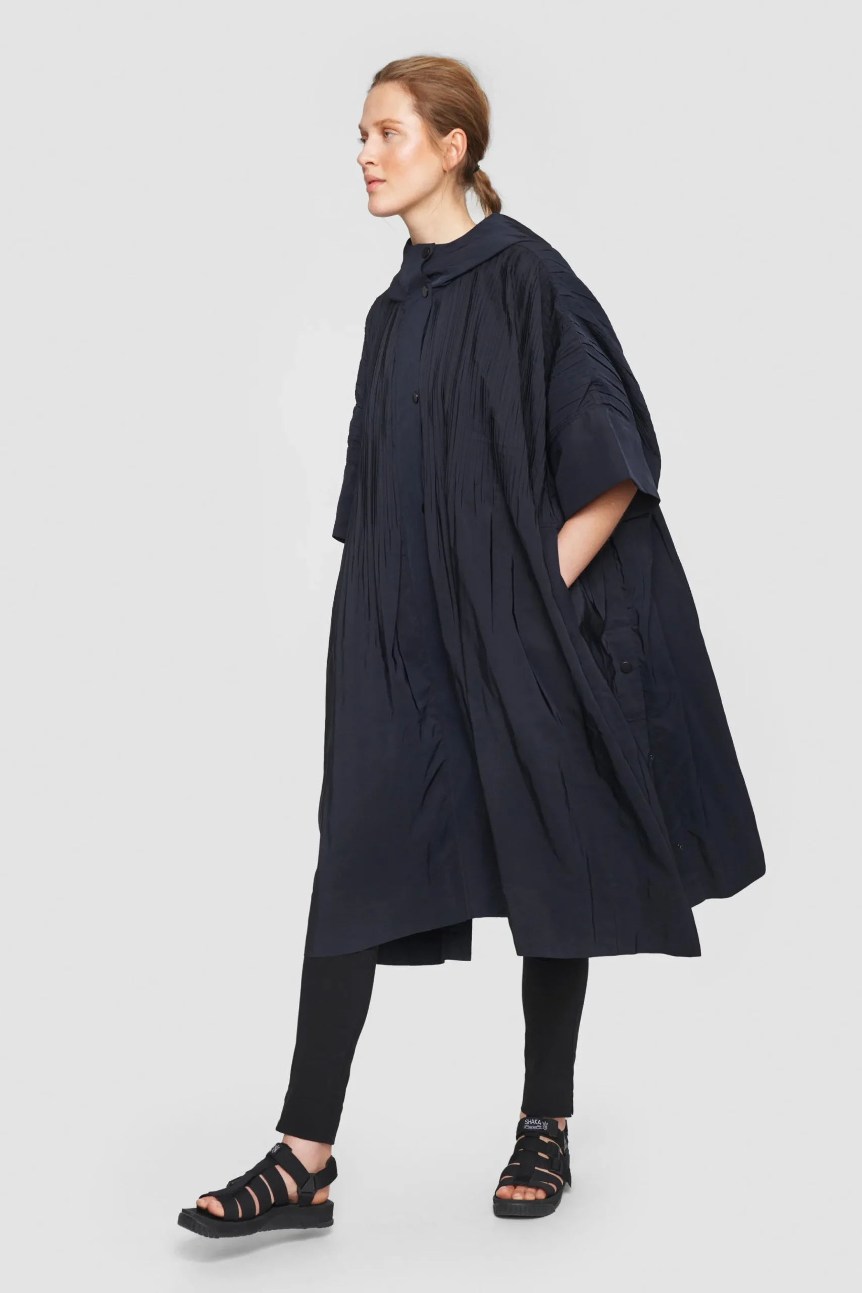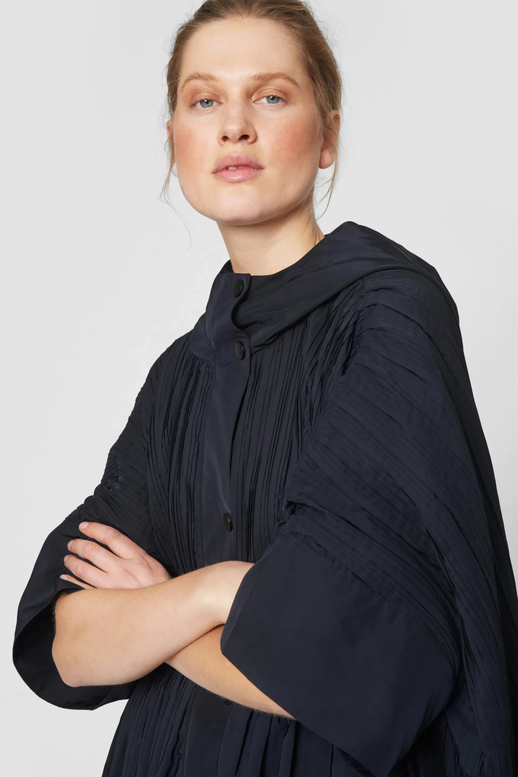 Flot Og Voluminos Frakke. Snittet Er Inspireret Af En Poncho, Hvilket Giver En Oversize Facon Og Et Markant Udtryk. Stoffet Falder Smukt Takket Vaere Den Plisserede Struktur. En Frakke, Som Er Laekker At Bruge I Overgangsperioden Og Pa Kolige Forarsdage.