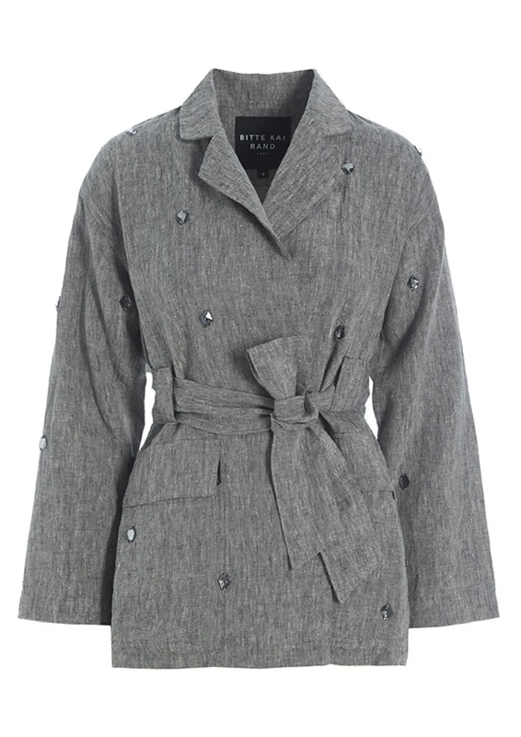 Denne Velsiddende Jakke Er Dekoreret Med Similisten Og Tilpas Fa Til, At Jakkens Udtryk Forbliver Enkelt Og Sofistikeret. Det Brede Bindebaelte I Taljen Giver En Flot Facon. En Meget Anvendelig Jakke, Der Tilforer Et Elegant Touch Til Sa Godt Som Alt I Garderoben.