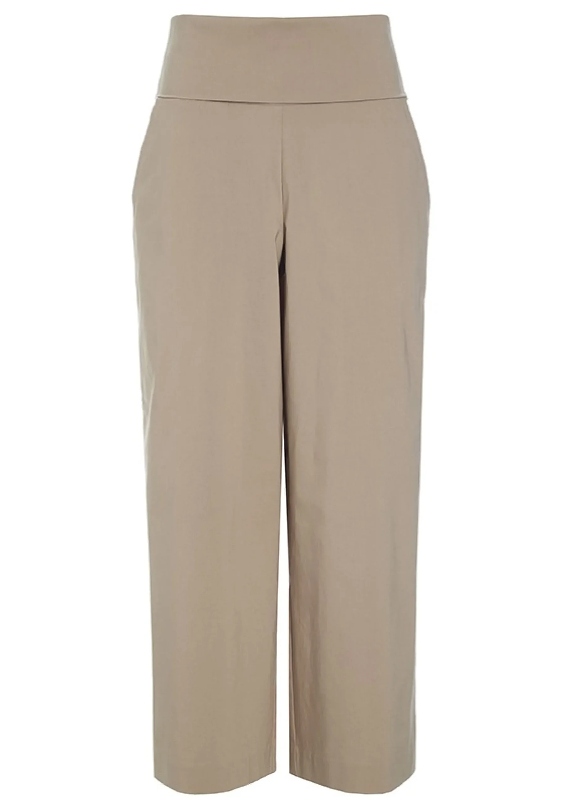 Meget Anvendelige Basisbukser Med Brede Ben Og Let Stumpende Laengde. Buksernes Brede Linning Kan Traekkes Op Over Taljen Eller Foldes Ned For En Almindelig Taljehojde. Denne Effekt Gor Dem Meget Behagelige. Der Er Stretch I Stoffet For God Bevaegelighed.