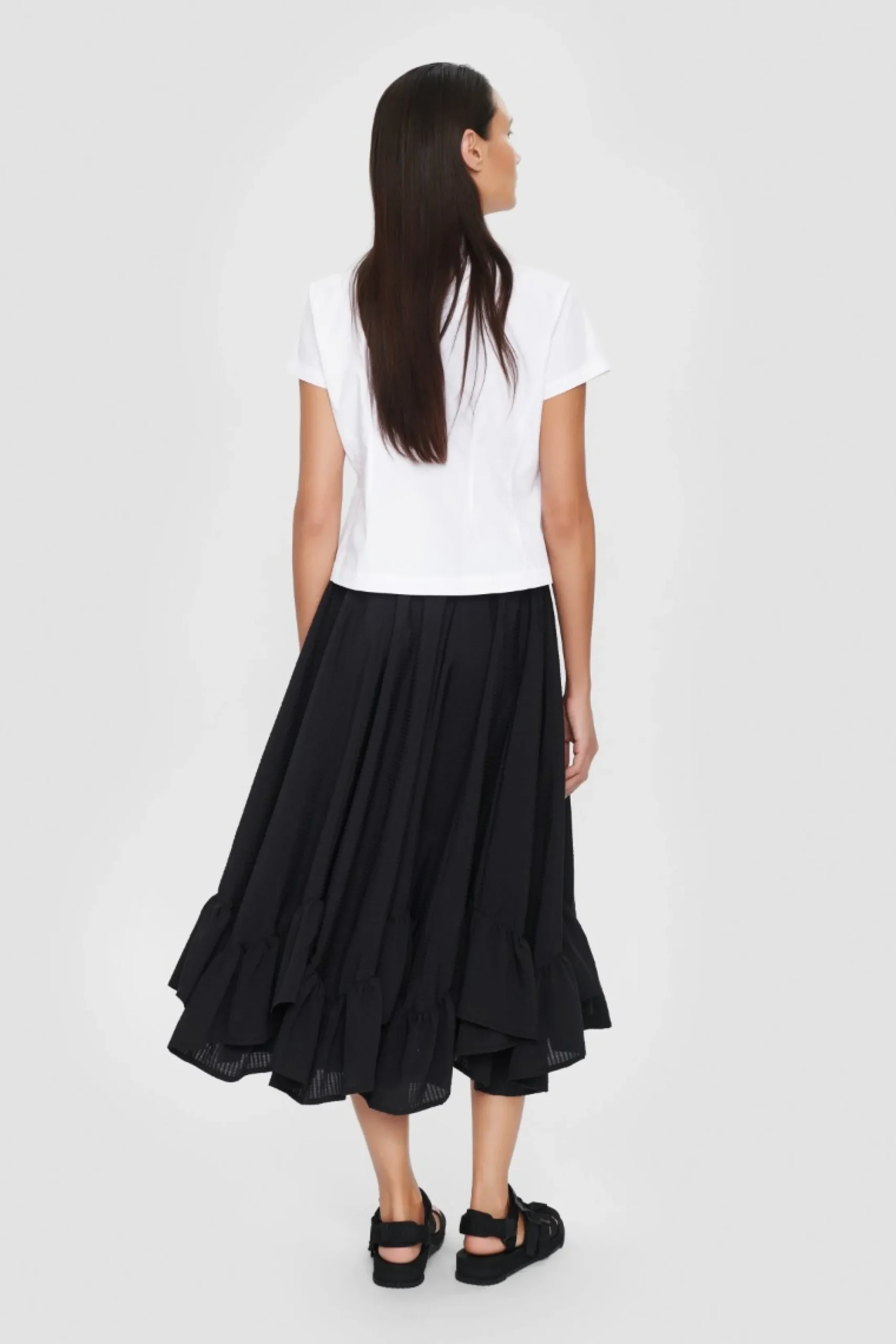 En Enestaende Flot Nederdel Med Smuk Bolgende Flaese Forneden Og Masser Af Volumen. Nederdelen Giver Virkelig Sus I Skorterne, Og Den Er Oplagt At Bruge Til Sommerens Fester Sammen Med En Top Eller Skjorte Og Flade Sandaler Eller Hoje Haele.
