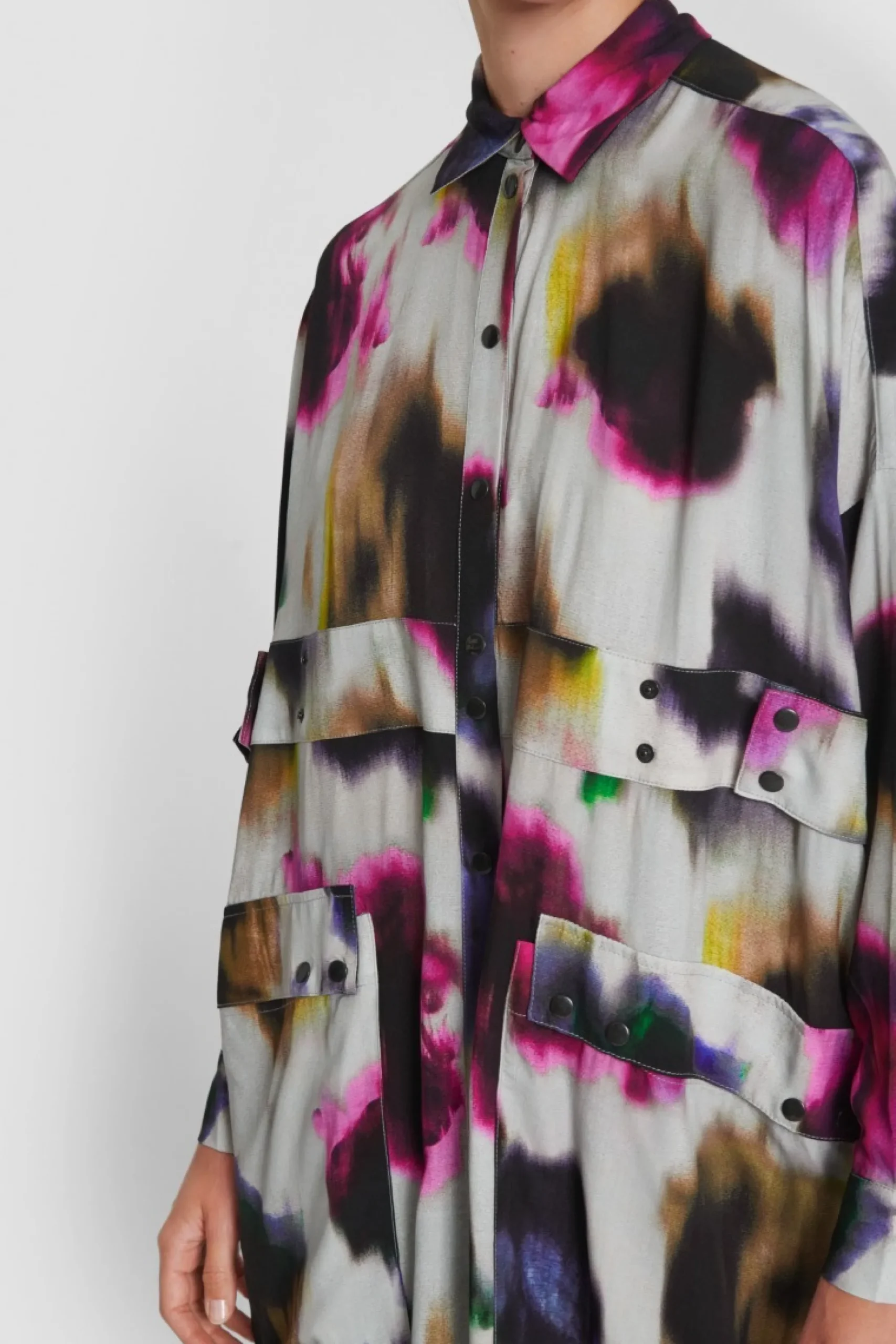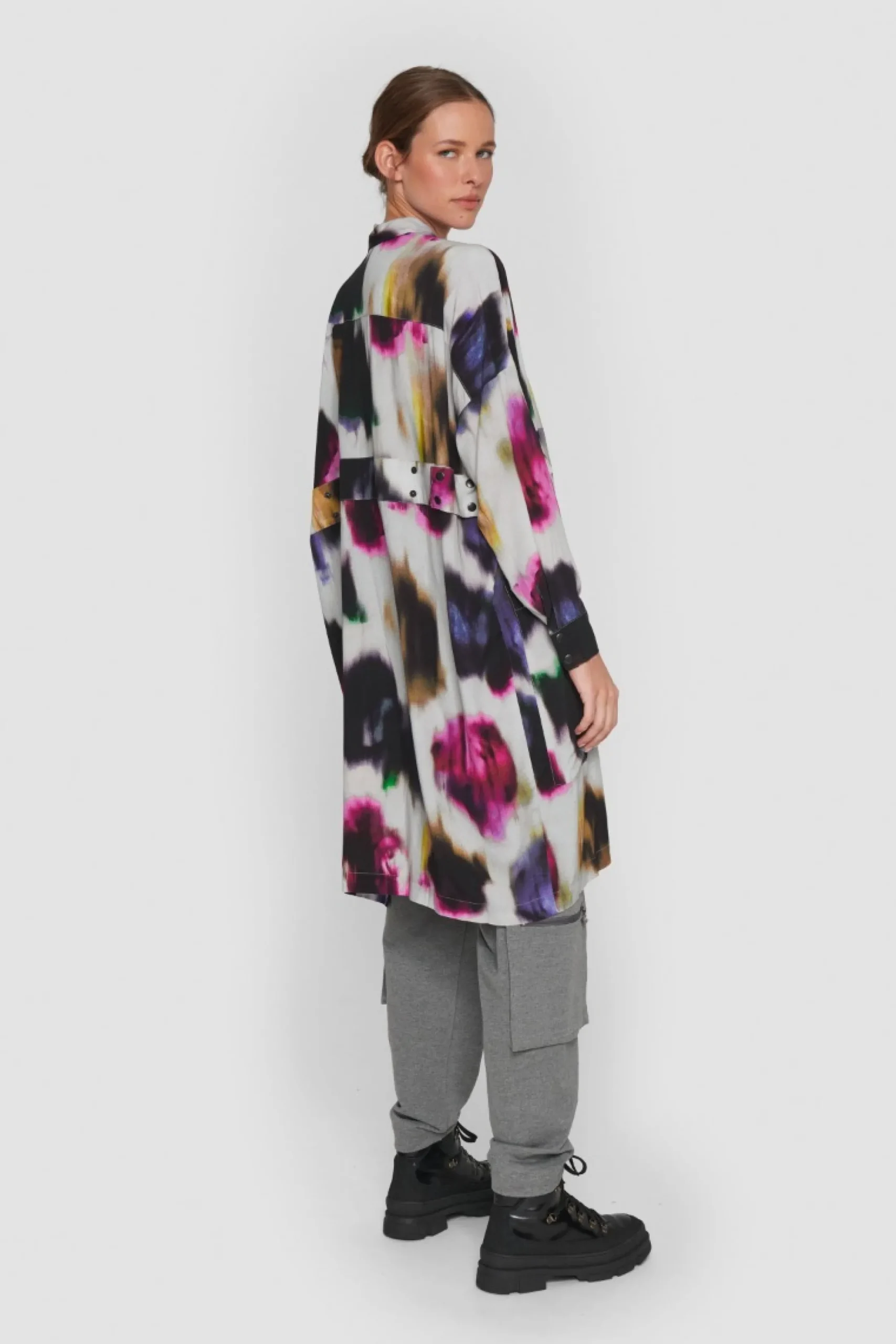 Skjortekjole Med Det Smukkeste Blomsterprint, Der Har Et Enkelt Og Grafisk Islaet. Kjolen Har Et Oversize Snit Og Store, Pasyede Lommer. Den Falder Flot Takket Vaere Den Lette Viskosekvalitet. Brug Skjortekjolen Over Et Par Bukser, Eller Saet Stromper Og Sneakers Til.