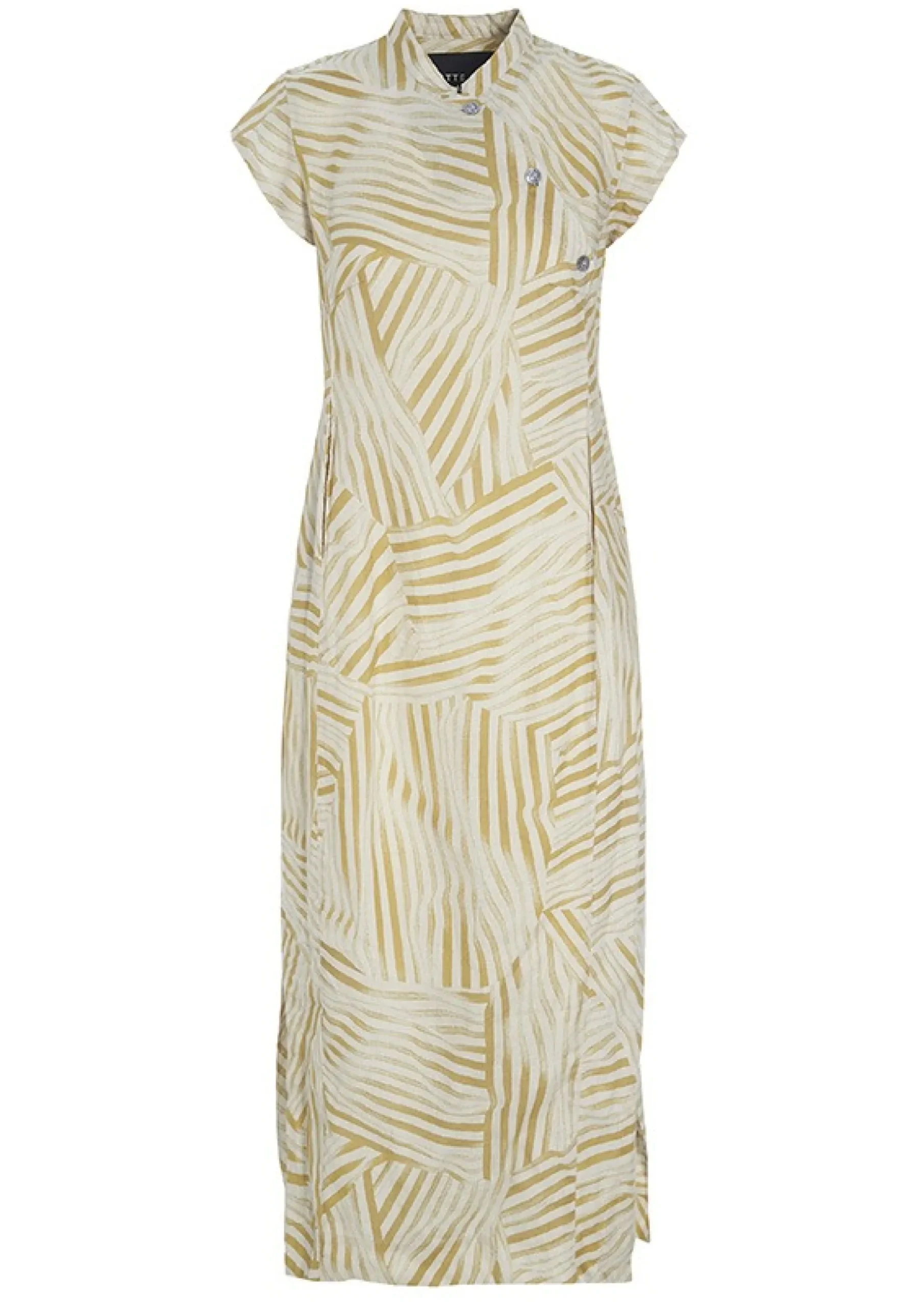Denne Kjoles Snit Er Superenkelt, Og Printet Giver Et Flot Grafisk Udtryk. Kjolen Er Syet I En Sval Horkvalitet, Og Den Giver En Smuk, Slank Silhuet. Du Behover Ikke Tilsaette Andet End Et Par Laekre Sandaler, Sa Er Du Klar Til Bade Sommerfest Og En Dag Pa Kontoret.
