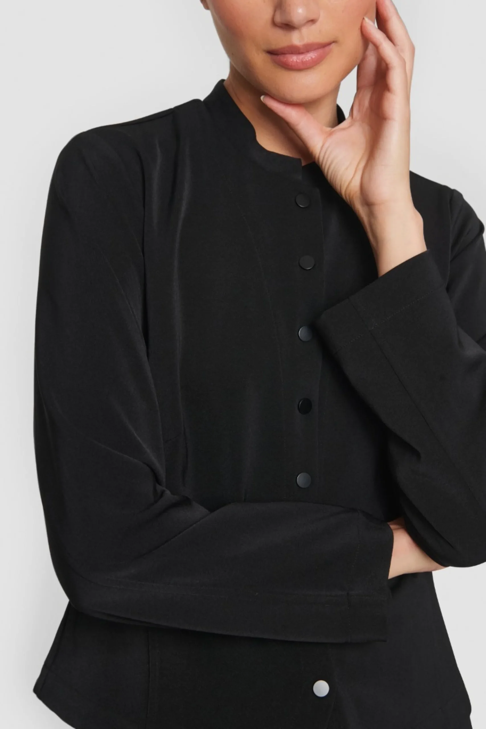 Elegant Og Enkel Jakke Med Et Taljeret Snit, Der Giver En Flatterende Facon. Jakken Er Oplagt At Bruge Som Alternativ Til En Skjorte. Eller Baer Den Abenstaende Med En T-Shirt Under Og Jeans, Brede Bukser Eller De Matchende Sakura Culotte Bukser Til.