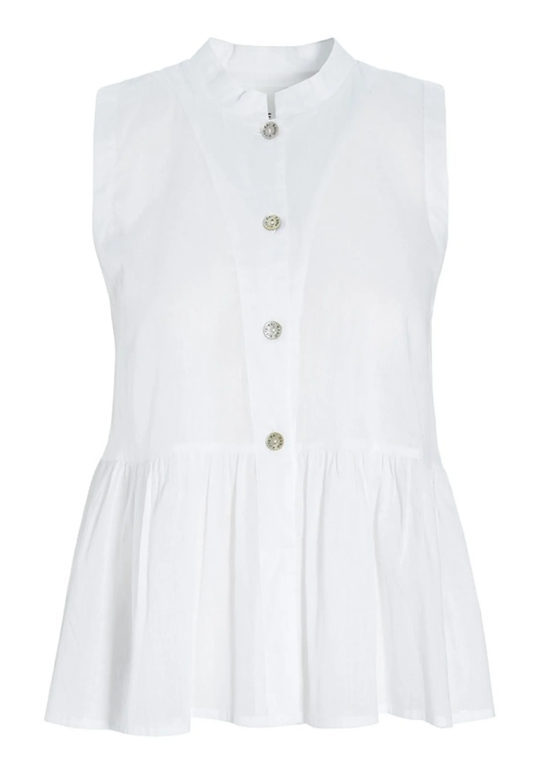 En Meget Klaedelig Bluse, Der Giver Bare Skuldre Og En Flot Silhuet Takket Vaere Den Flotte Vidde, Der Er Forneden Pa Blusen. Brug Den Til At Gore Et Par Jeans Sommerlige, Eller Saet Den Til Lose Shorts For Et Pa Un Gang Afslappet Og Stilfuldt Look.