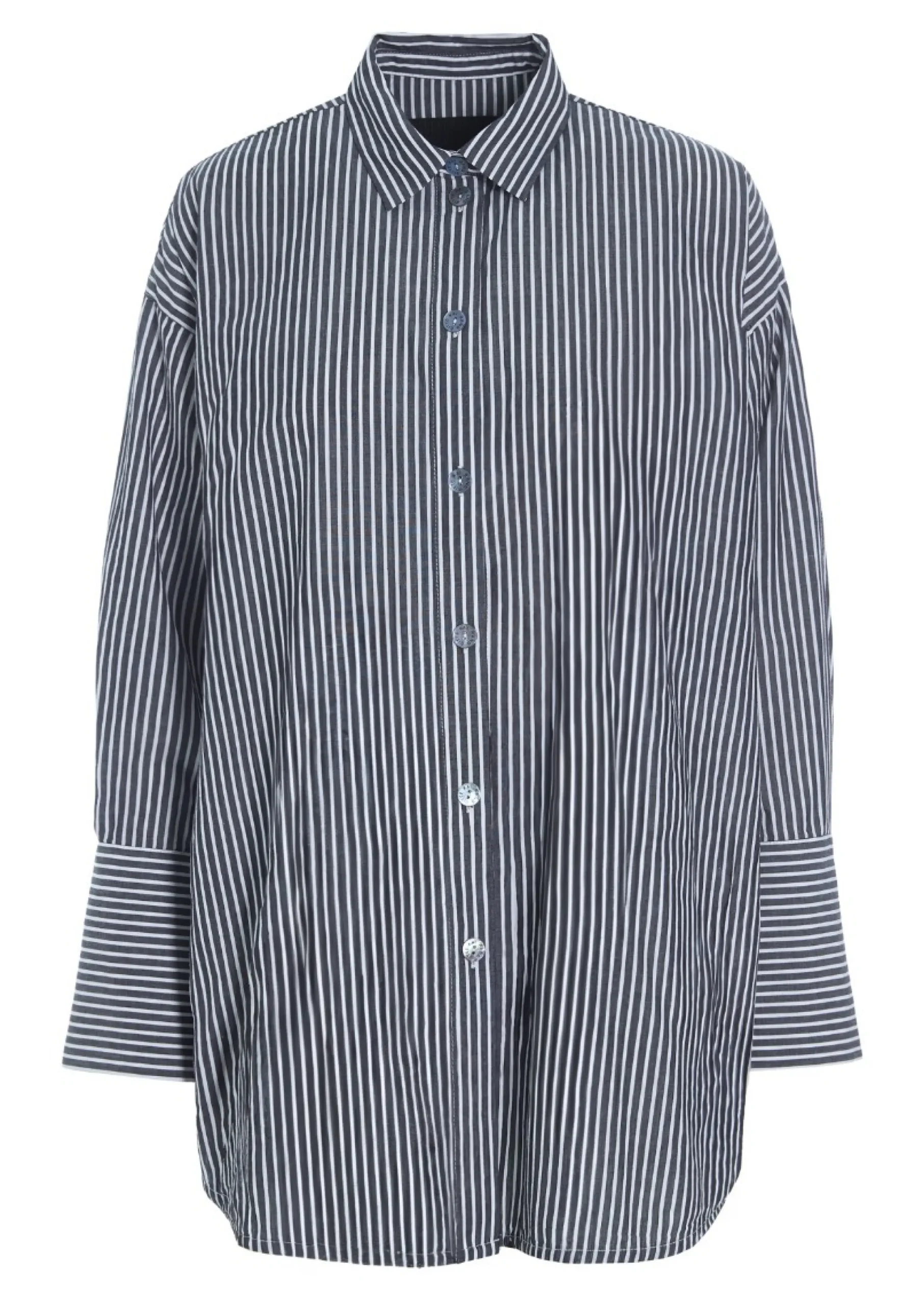 Stribet Skjorte Med Klassisk Snit Og Brede Manchetter, Der Giver Et Eksklusivt Og Elegant Udtryk. Skjorten Er Meget Anvendelig Og Kan Kombineres Med Enhver Underdel. Brug Den Med En Blazer Over Eller Saet Dine Yndlingsjeans Eller Klassiske Bukser Til.