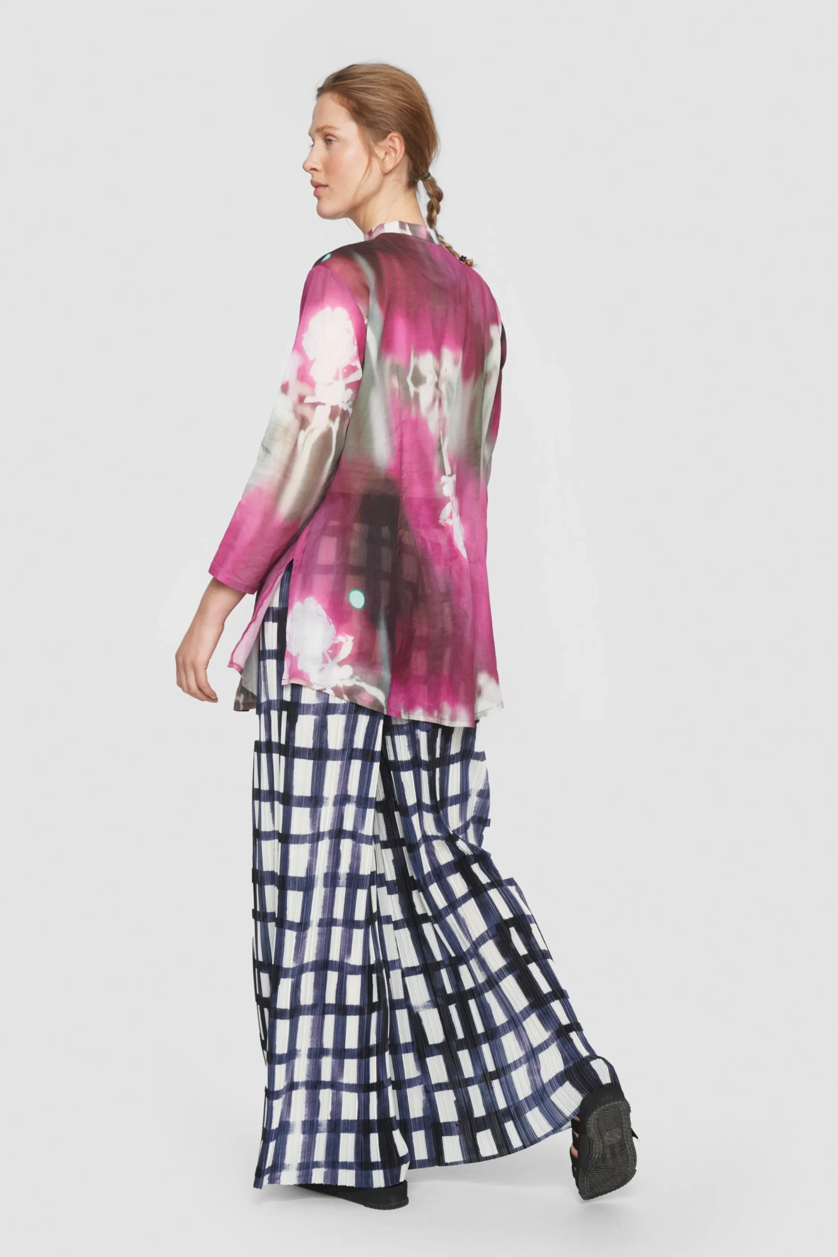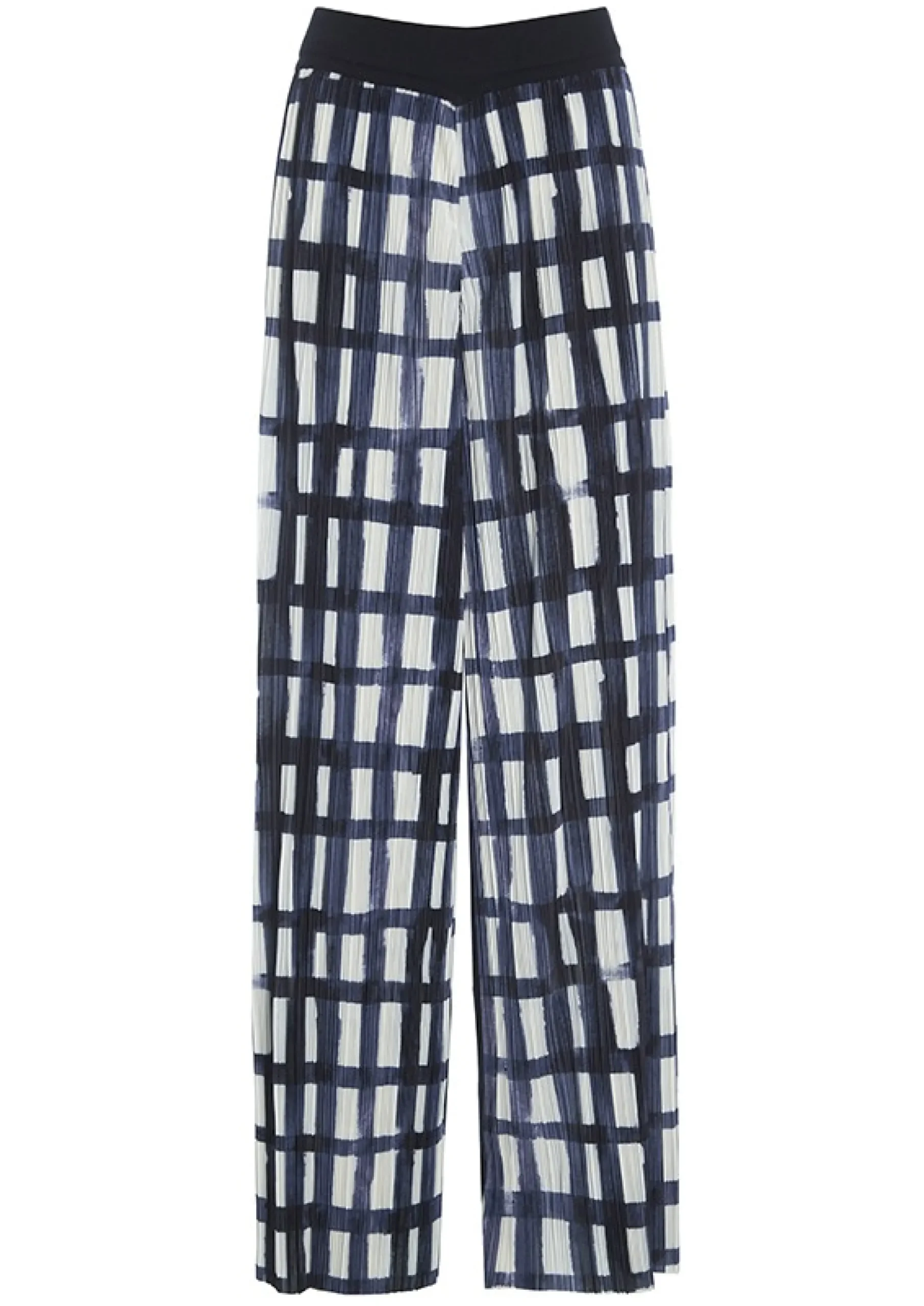 Ternede Bukser Med Vidde I Benene. Bukserne Er Printet Med Brede Tern, Lavet Som Penselstrog. De Er Oplagte At Bruge Til En Hvid Skjorte Eller En Top Med Et Andet Iojnefaldende Monster For Et Flot Og Personligt Miks. Den Plisserede Struktur Far Stoffet Til At Falde Rigtig Paent.